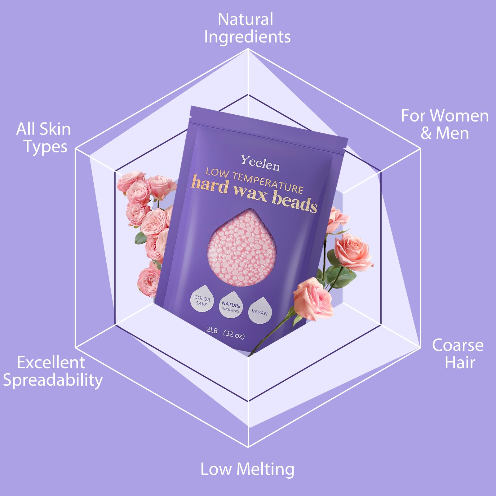Hard Wax Beads 2LB Waxing Beads: Wax Beads for Sensitive Skin Bikini Wax Beans Brazilian Waxing Face Lip Eyebrow - Bulk Ideal for Salons and Home Use (Pink)