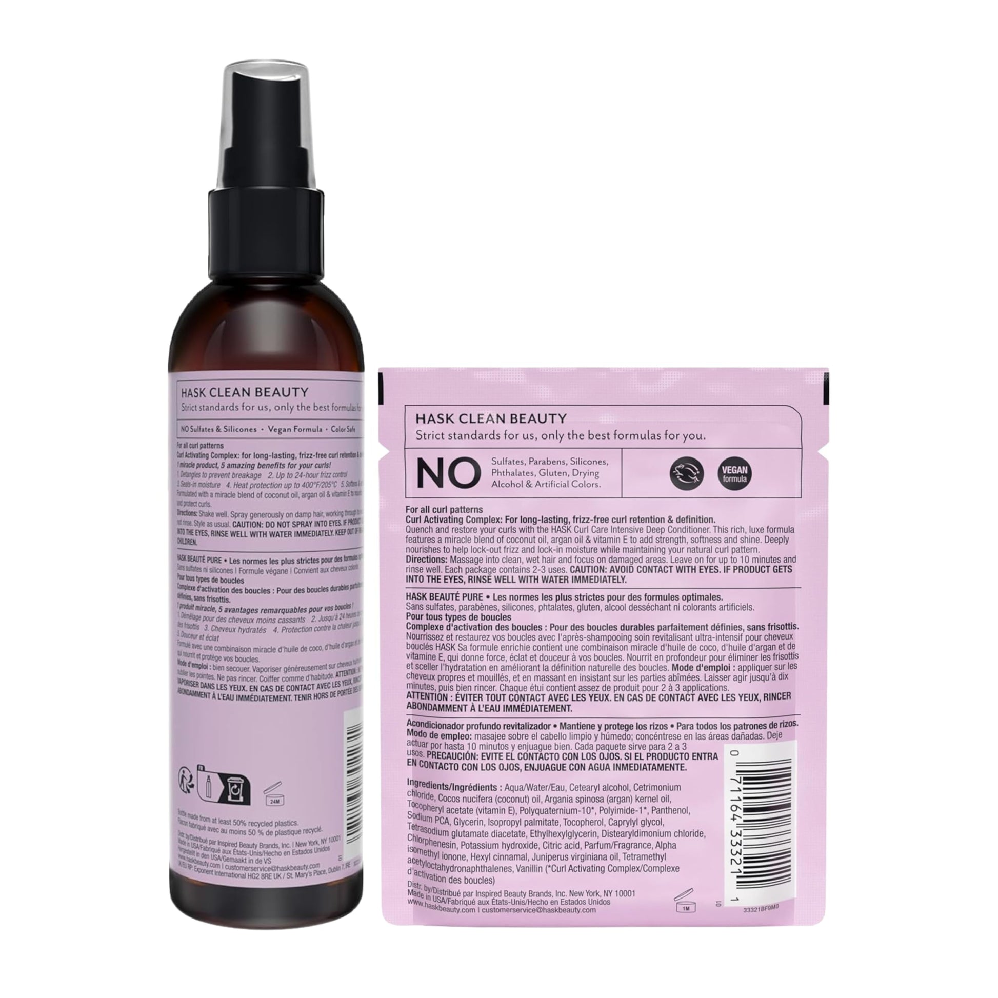 HASK CURL CARE 5-in-1 Leave In Conditioner Duo (6oz-Qty 2) & Deep Conditioner Packette, vegan formula, cruelty free, color safe, gluten-free, sulfate-free, paraben-free