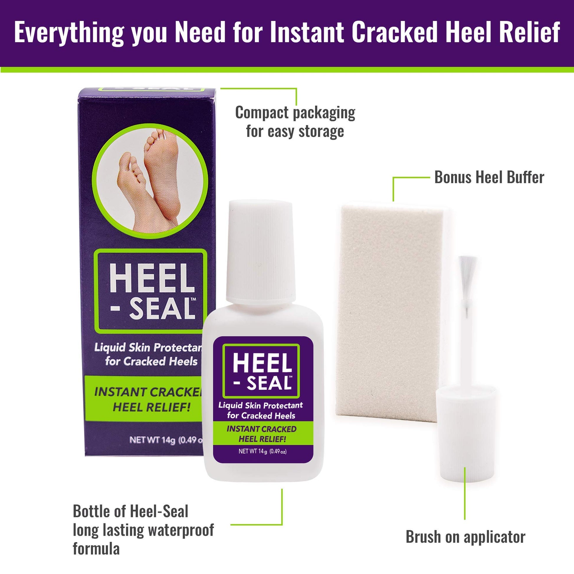 - ✅ BONUS BUFFER - Every order of Heel-Seal includes 1 bottle of Liquid Skin Protectant, applicator brush, and buffer to help remove dead and dry skin before applying the Heel-Seal liquid skin protectant.