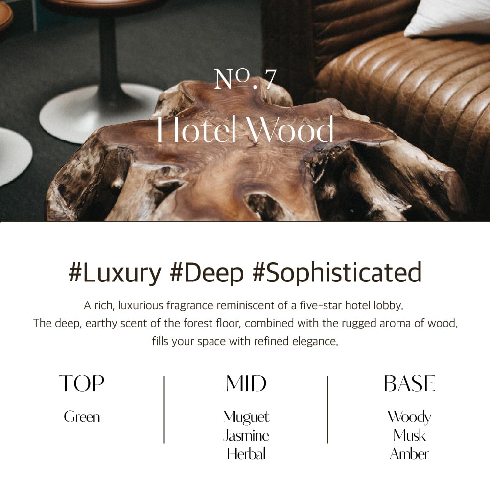 - HOTEL WOOD SCENT: Immerse in the deep, woody aroma of Hotel Wood. This luxurious scent combines the earthiness of forest soil with the rich, enduring fragrance of aged trees, bringing a touch of sophistication to your daily routine.