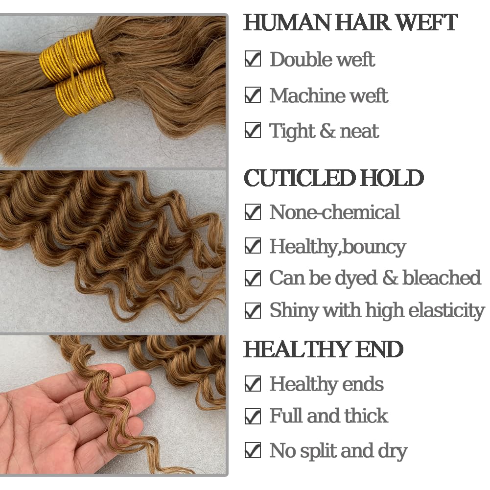 - A Wide Variety Of Styling Use With Deep Wave Bulk: No Weft Human Hair For Braiding Honey Blonde, Can Be Used To Make Bohemian Braids, Knotless Braids, Locs And So On. Suitable For Date, Travel, graduation And Birthday