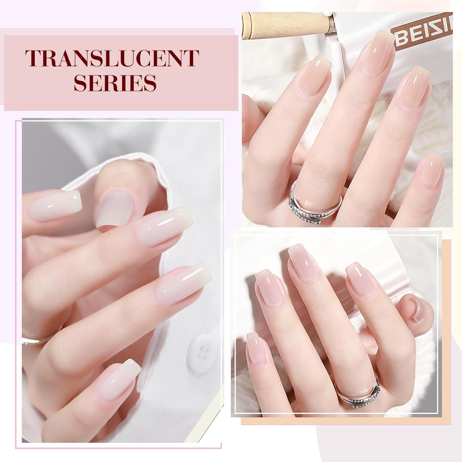 Jelly Nude Pink Gel Nail Polish Set - 6 Pcs Soak Off LED Gel Manicure Kit