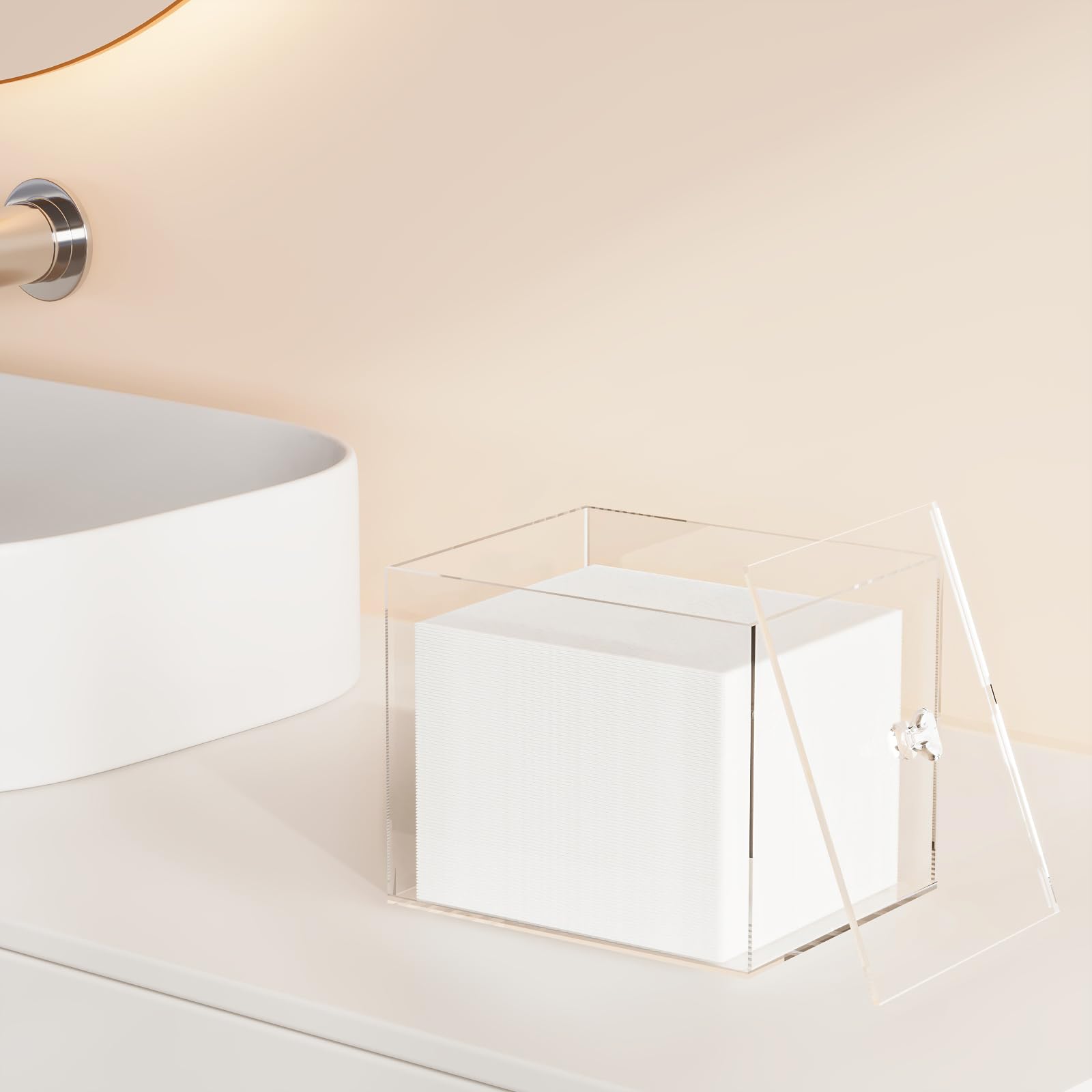- 【Elegant Design for Any Space】 The sleek design of our disposable face towel holder complements any bathroom or dresser decor. The clear acrylic construction adds sophistication while keeping your disposable face towels organized. Ideal for clean towels XL holder.