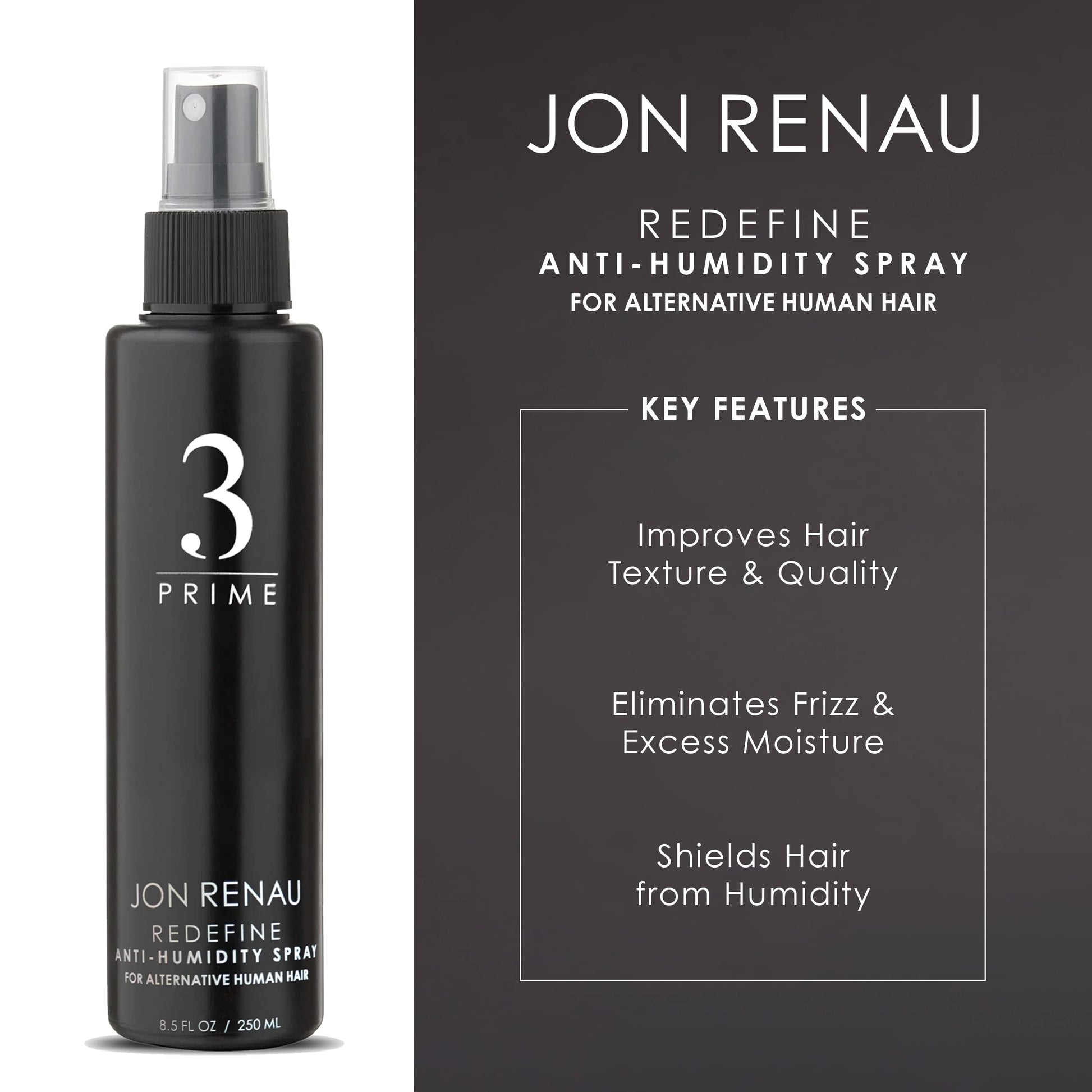 Details: "Jon Renau's Redefine anti-frizz hair treatment is here to help tame your tresses for a gorgeous hair day, every day. Designed for your Jon Renau Remy Human Hair styles, Redefine provides a smooth, moisture-balanced look on straight or textured hair. This heat-activated spray protects against frizz-inducing humidity for over 24 hours. Benefits: - Proven anti-frizz protection for up to 24hrs. - Protects hairs from damage caused by flat irons, curling irons, hair dryers, and other hair drying tools - Transforms the texture of your hair leaving it soft and silky - Protects against heat - Hydrolyzed Keratin repairs and restores moisture, elasticity, luster, and smoothness."