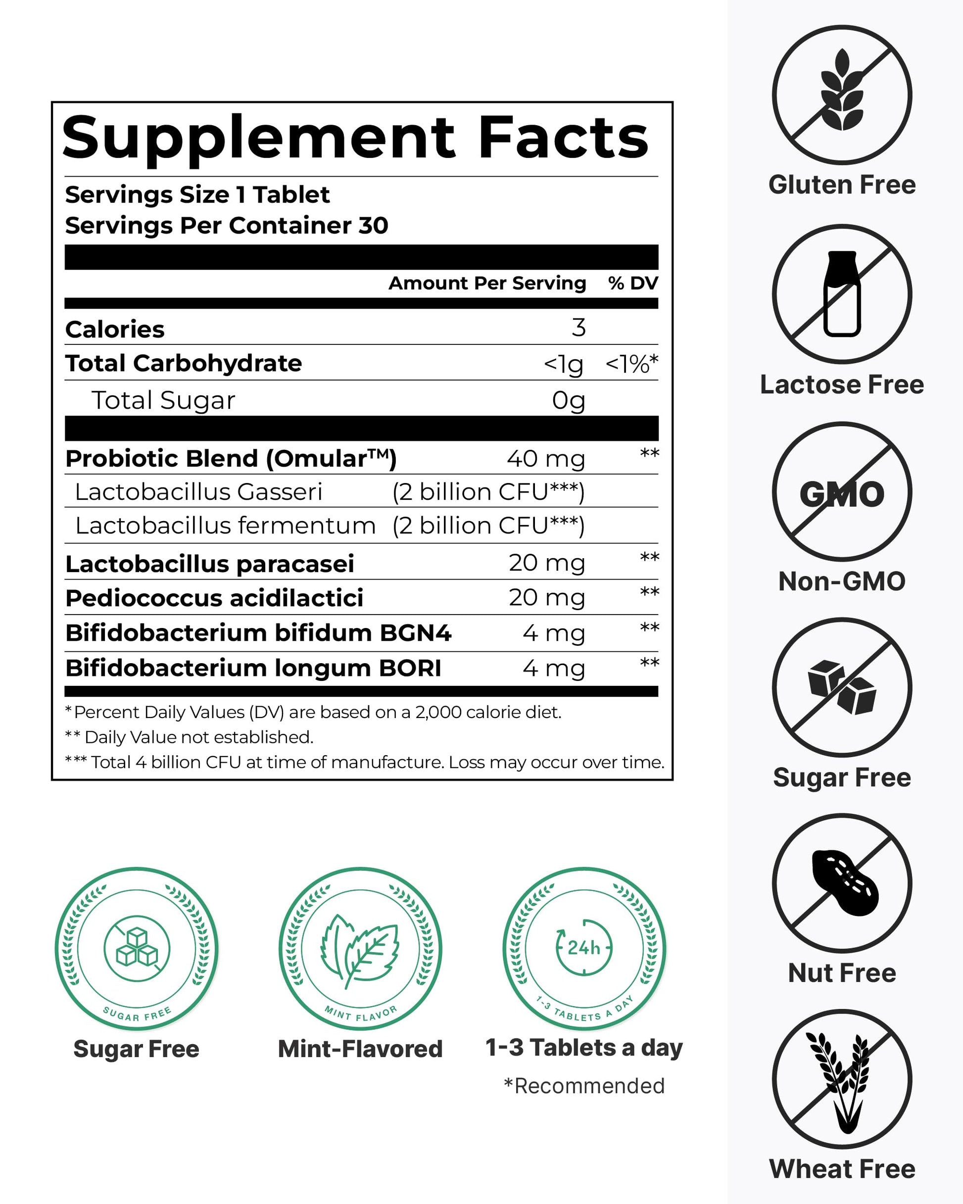 K-Nutra Dentifresh Xylitol Tabs - Oral Probiotics to Combat Bad Breath, Dry Mouth & Support Fresh Breath, 4 Billion CFU, Sugar-Free, Mint Flavor, 30 Tablets