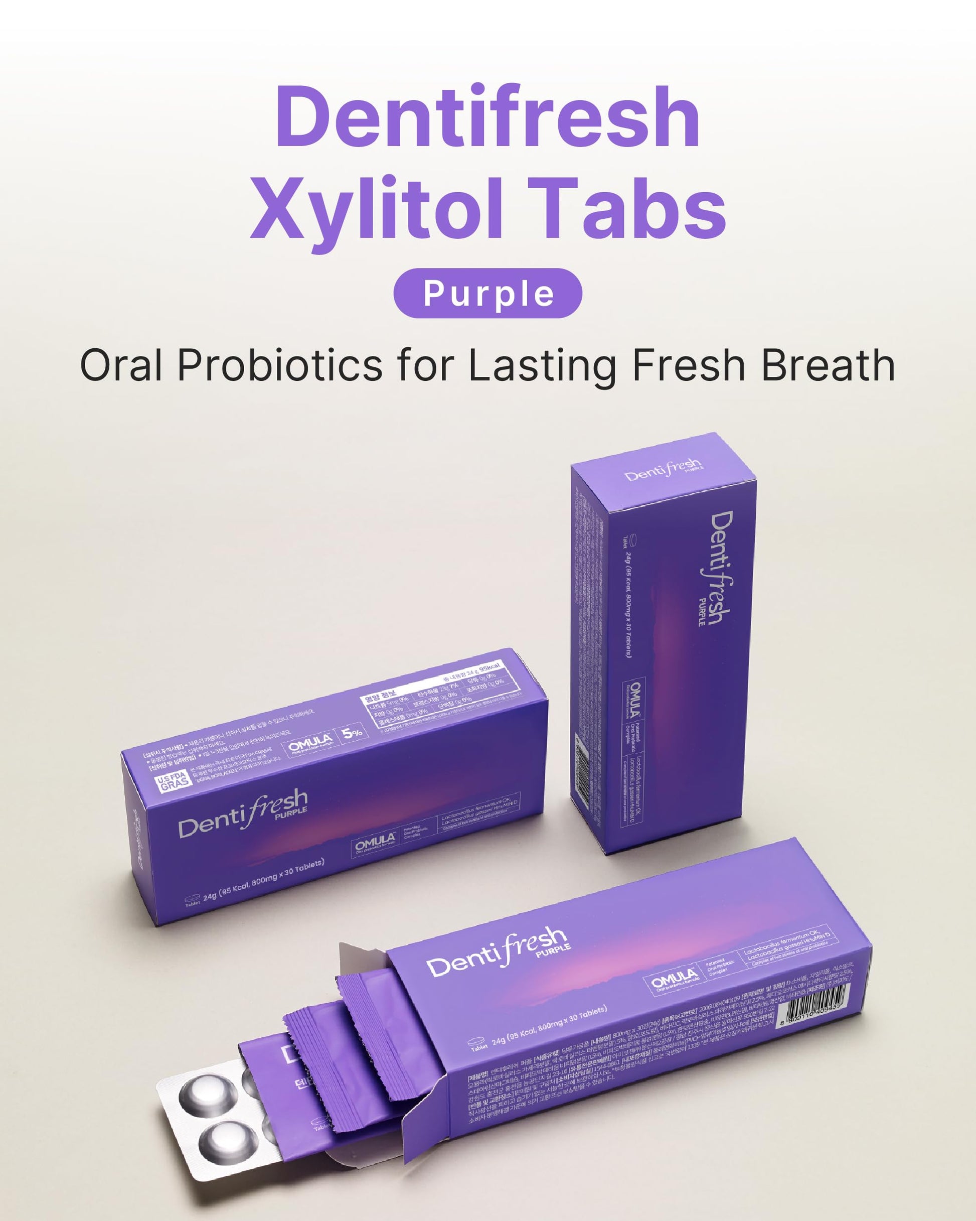 K-Nutra Dentifresh Xylitol Tabs Purple (24g, 30 Tablets) Holiday Gifts 4 Billion CFU, Sugar-Free Oral Probiotics for Teeth & Mouth, Bad Breath Gums, Safe for Bedtime, Mild Grape Flavor with OMULA