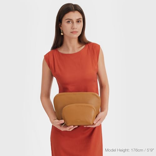 Kattee Leather Makeup Bag, Travel Cosmetic Bag Set, Toiletry Bag Organizer for Women, 1-PACK, Medium, Brown