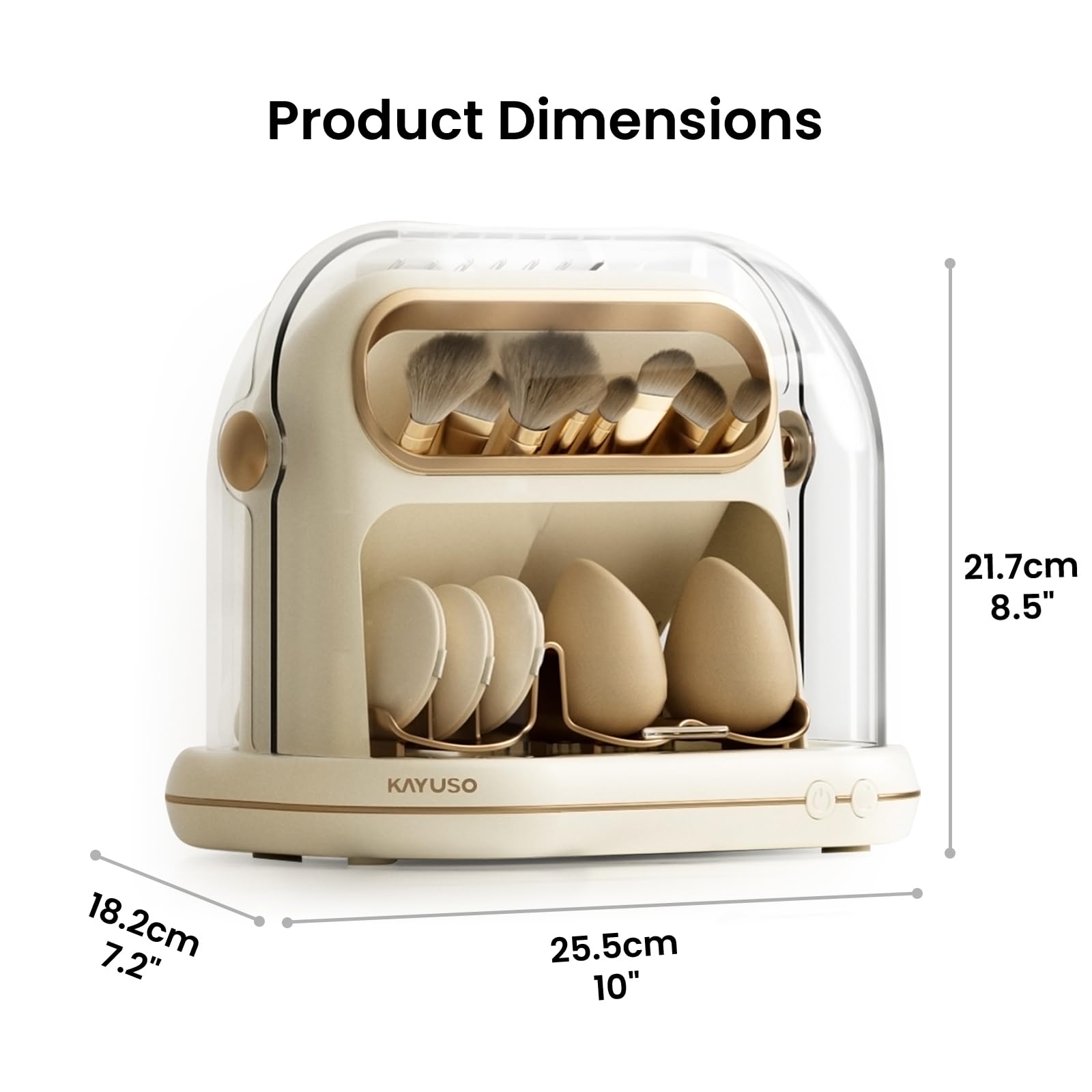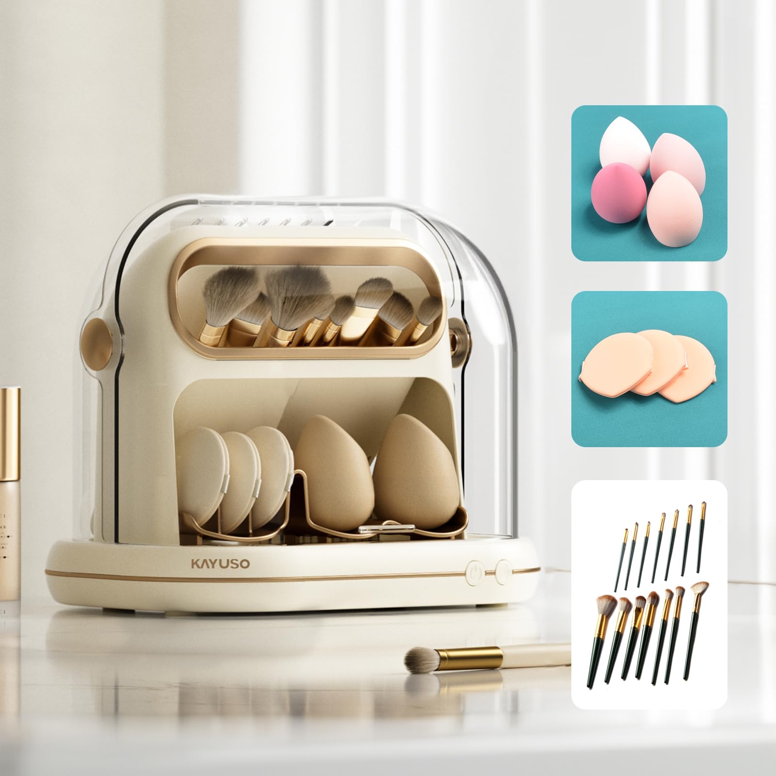 KAYUSO Electric Makeup Brush Dryer Machine, 3 in 1 Automatic Makeup Brush Dryer and Storage with Cover, Timed Cleaning Tool for Most Size Brushes and Sponges