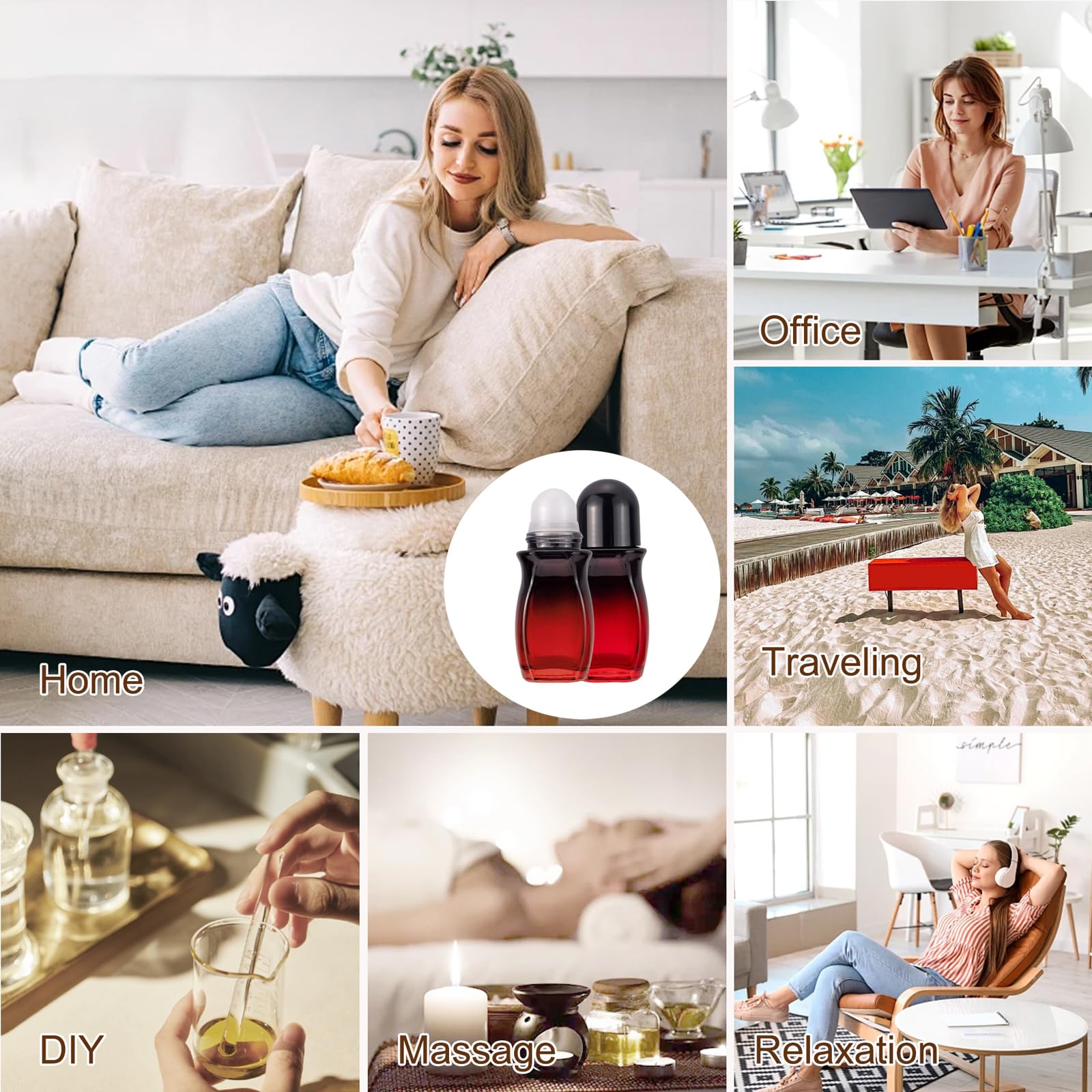 Kesell 2Pack Glass Roller Bottles 50ML Gradient Red Deodorant Bottle with Opener Refillable Glass RollerBall Deodorant Container for Essential Oils, Perfume (Black Lid)