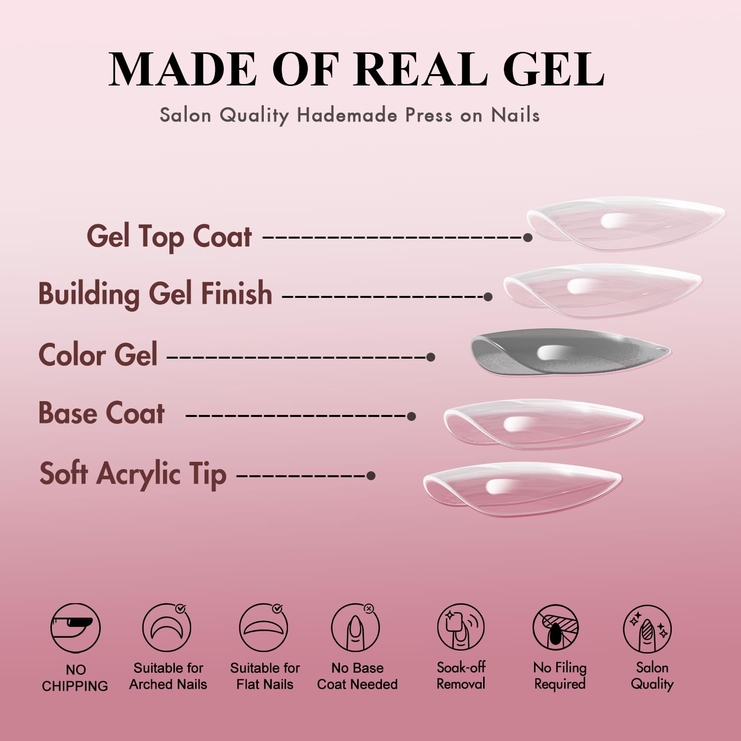 - Durable, Chip-Free Finish: The premium gel coating resists cracking and fading, keeping your medium length stick on nails for women vibrant and smooth throughout wear. With proper care, each sofe gel press on nails short square stays firmly in place for up to two weeks.Strong and reliable without damaging your natural nails
