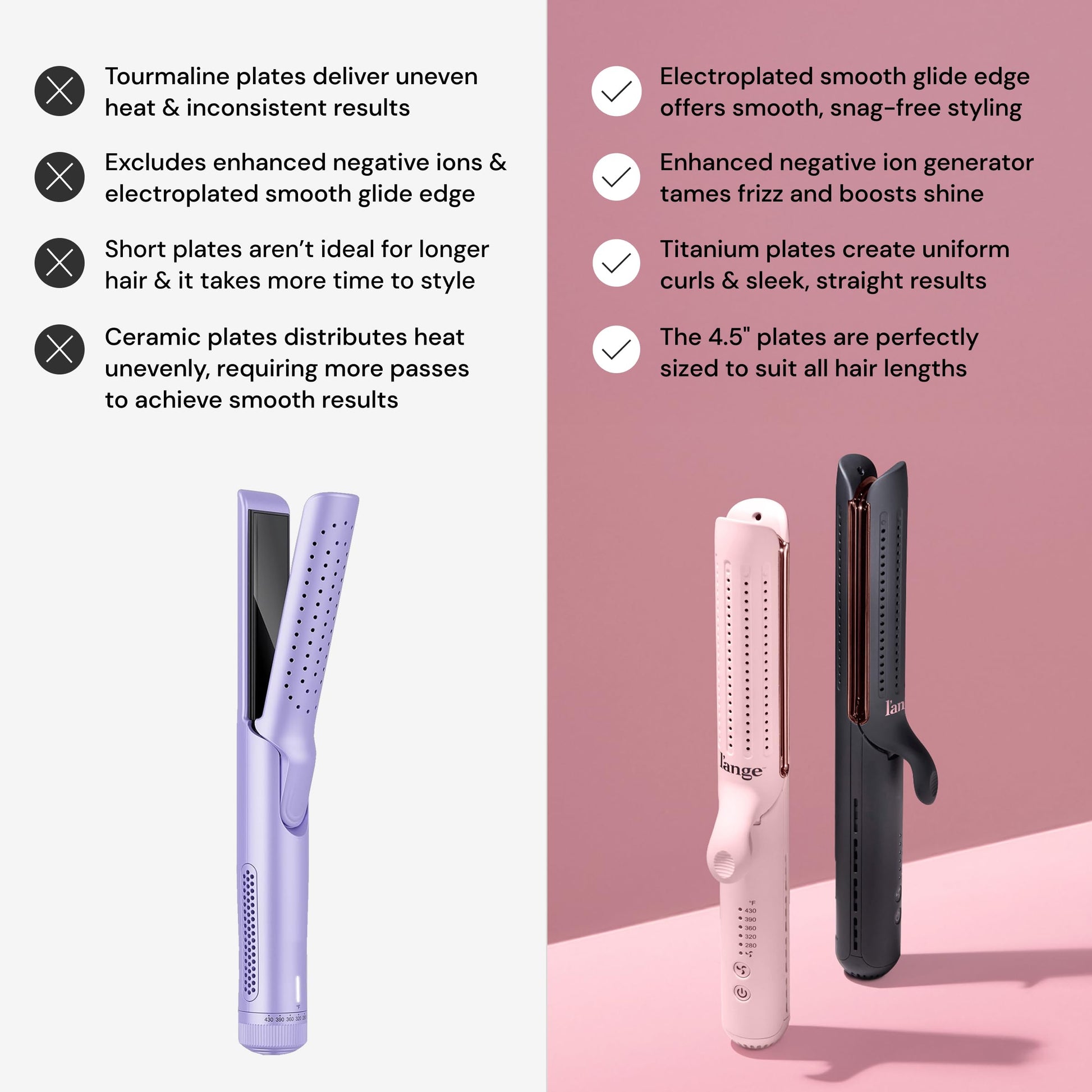 L'ANGE HAIR Le Duo Edge 360° Airflow Titanium Styler Blush | 2-in-1 Flat Iron Straightener & Curling Iron | 1” Wide Titanium Plates with Rounded Corners & Softly Beveled Edges (Blush)