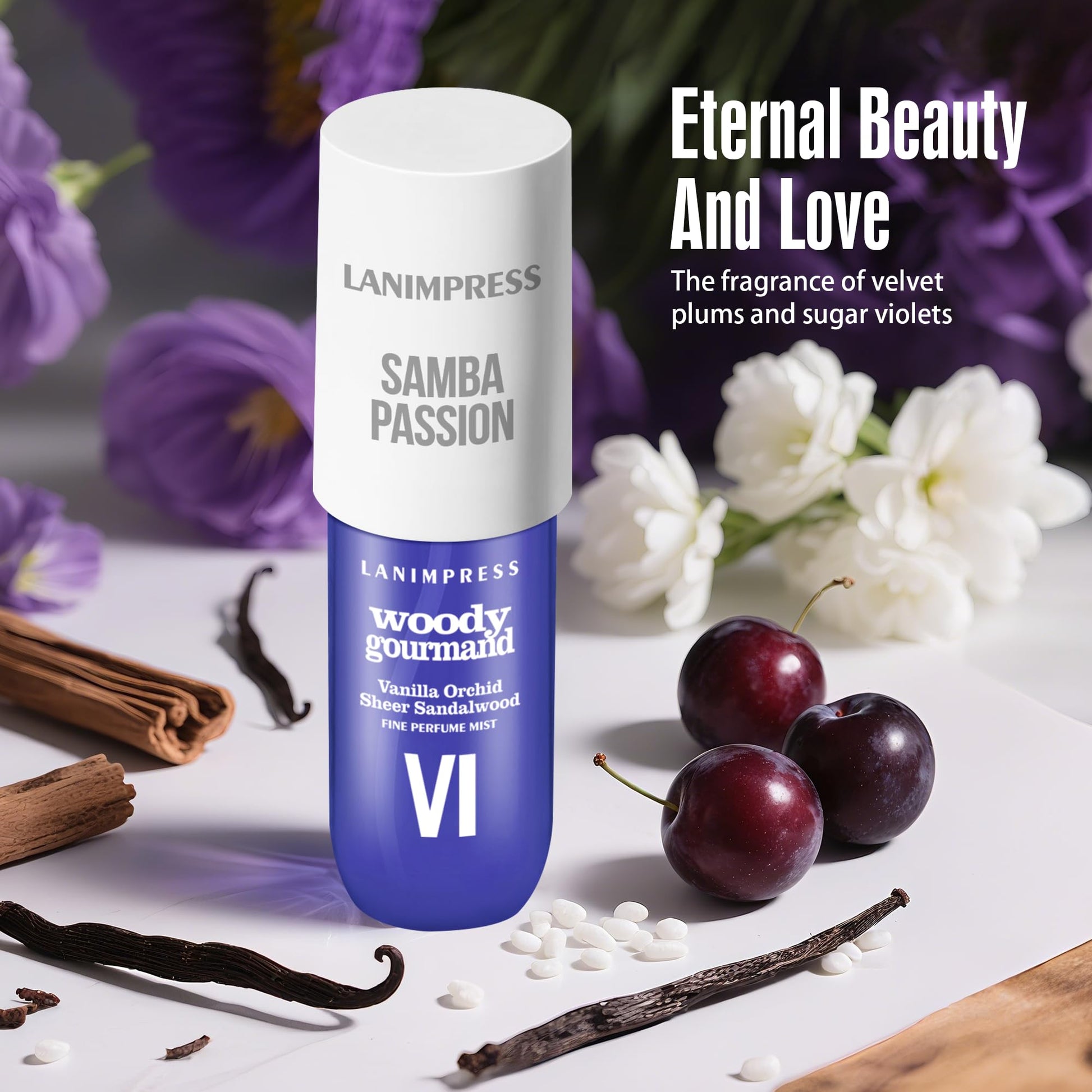 LANIMPRESS Perfume - No.6,Body Spray For Women(Eau De Perfum) Hair & Body Fragrance Mist,Fresh Fruity & Floral Flavors Gourmet Tune(Velvet Plum +Sugared Violet+Vanilla ) Perfumes For Women(3 fl oz)