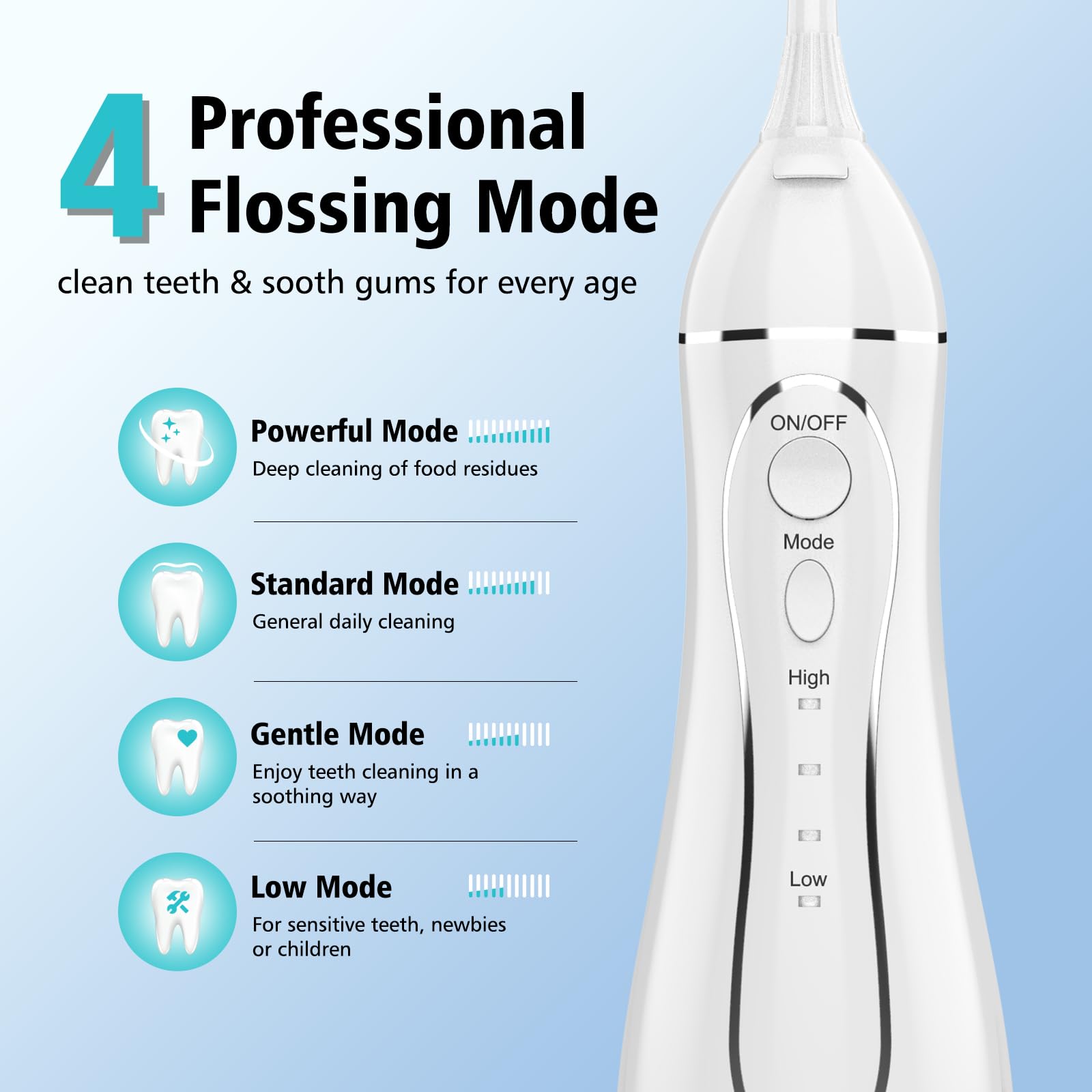 - 【 Deep Clean, Improve Gum Health, Freshen Breath 】The Leominor water dental flosser, With upgraded unique pulsation technique, the water flosser has 4 cleaning modes with a 0.75mm powerful water stream and up to 1400 high-pressure water pulses to remove 99.9% food residues hidden deep in the mouth, massage the gum effectively and promoting blood circulation. and addresses oral issues like bad breath, orthodontic teeth brace and bridge care. The travel teeth flosser has offer a pressure range of 50-150PSI strong water press making it suitable for sensitive teeth and meeting various oral care needs for different groups of people, including kids and the elderly.