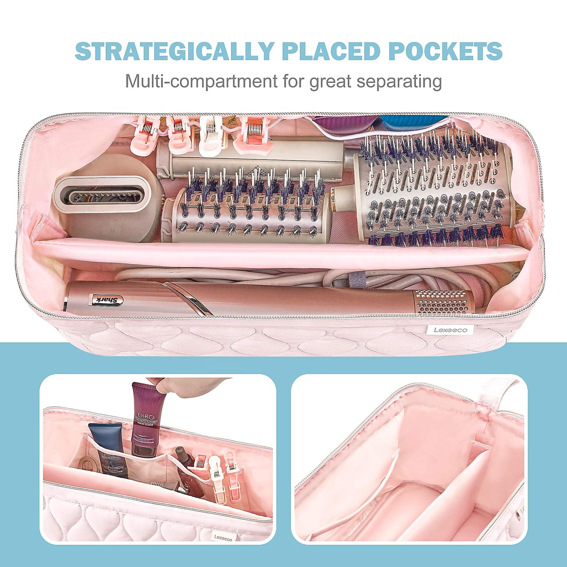 Lexeeco Hair Tools Travel Bag for Shark Flex Fusion Puffer Flexstyle Carring Case Portable Dyson Airwrap Travel Case for Shark Hair Dryer Flat Curing Iron Organizer (Pink)