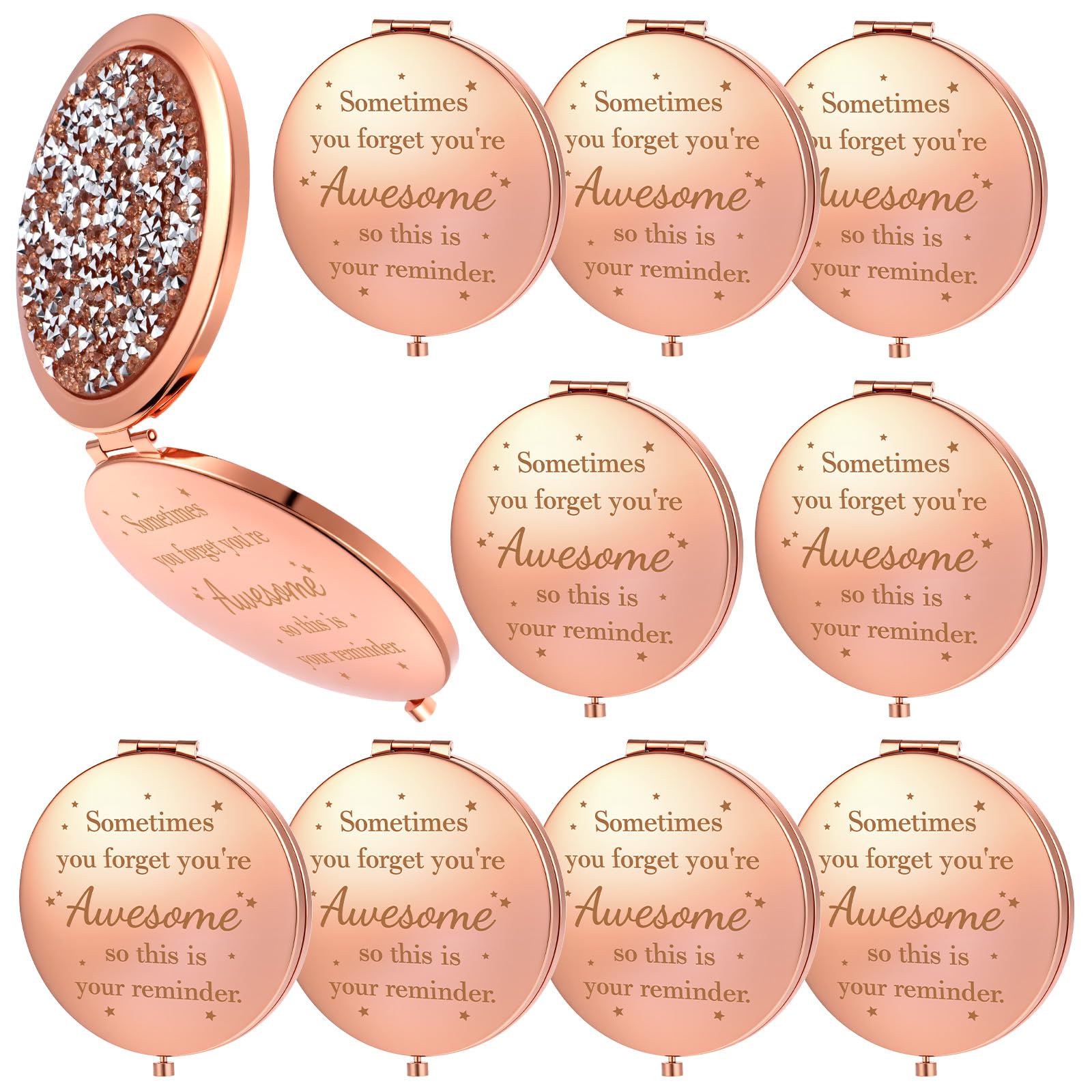 Limbeuuu 10 Pcs Inspirational Compact Mirror Sometimes You Forget You're Awesome Appreciation Gifts for Women Mother's Day Party Favors Magnifying Pocket Mirror (Rose Gold)