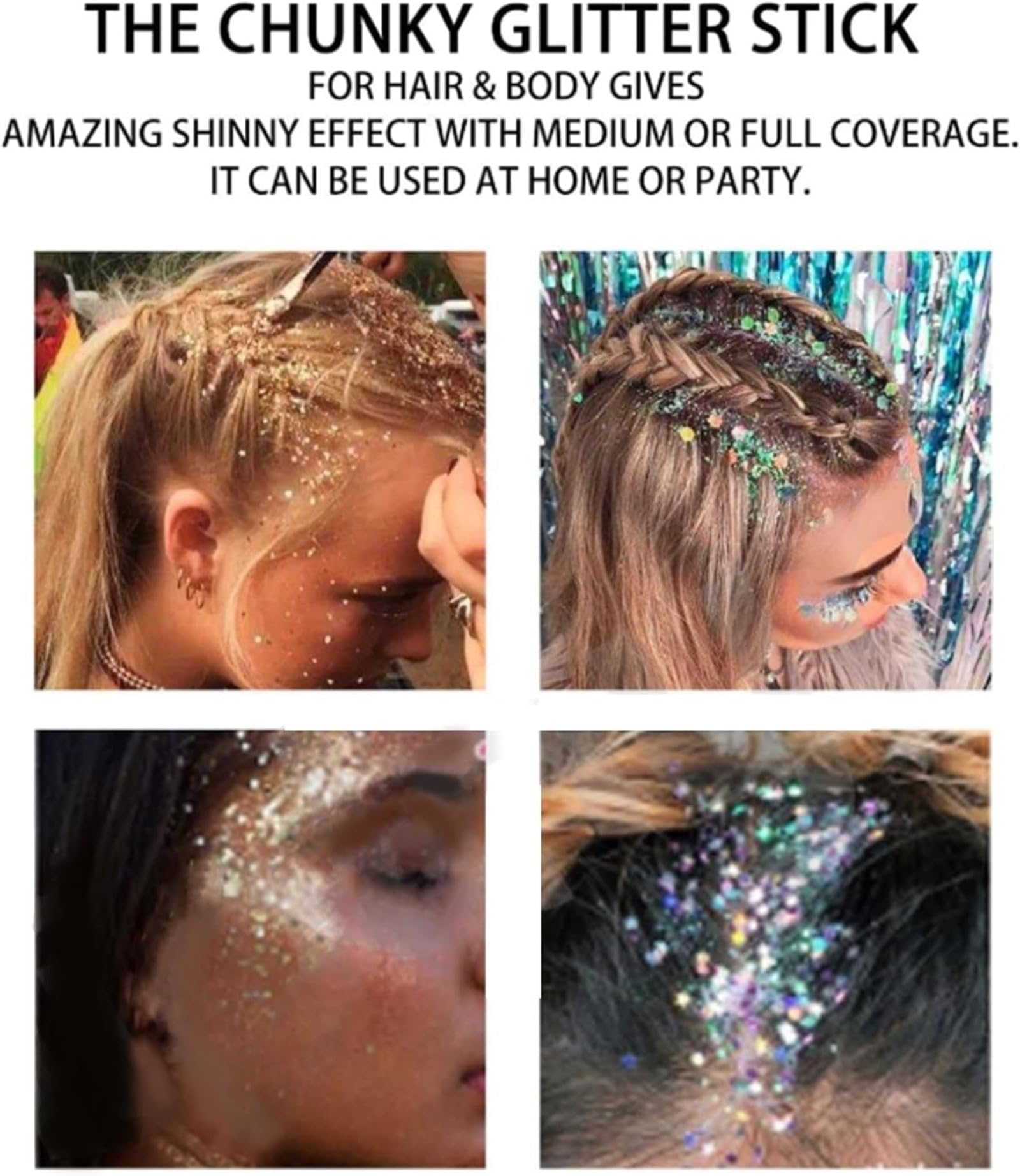 - Gentle & Skin-Safe: We understand the importance of safety, especially when it comes to products applied to your skin, That's why our Glitter Stick Hair and Body features a hypoallergenic formula that's gentle enough for use on your face and body, It contains no harsh chemicals and won't cause skin irritation, making it suitable for all skin types