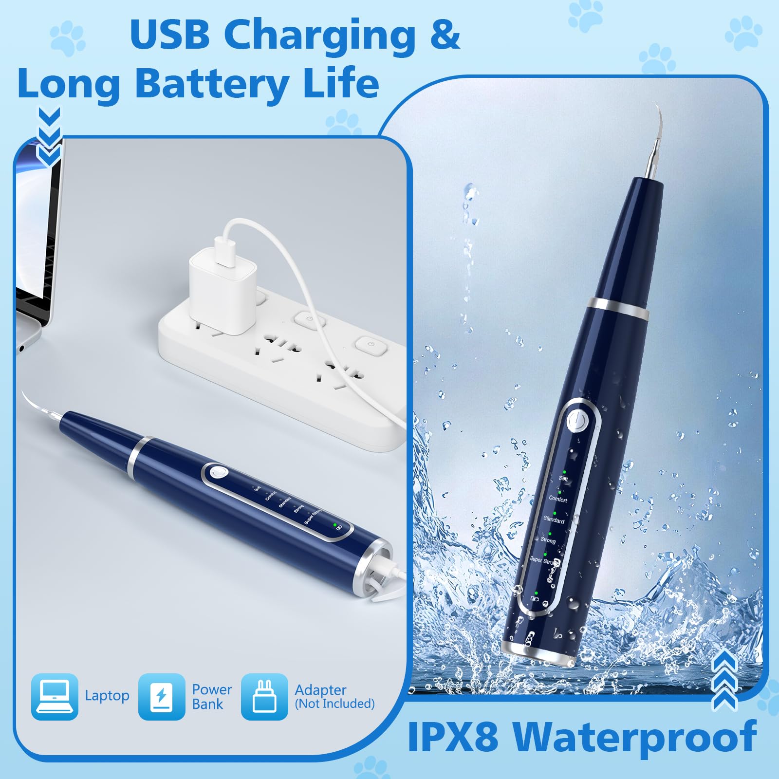 - Long Lasting and IPX8 Waterproof: This electric dental cleaning tool comes with a USB charging cable, which takes 2-3 hours to charge and lasts up to180 minutes. IPX8 waterproof rating, washable but not soaking