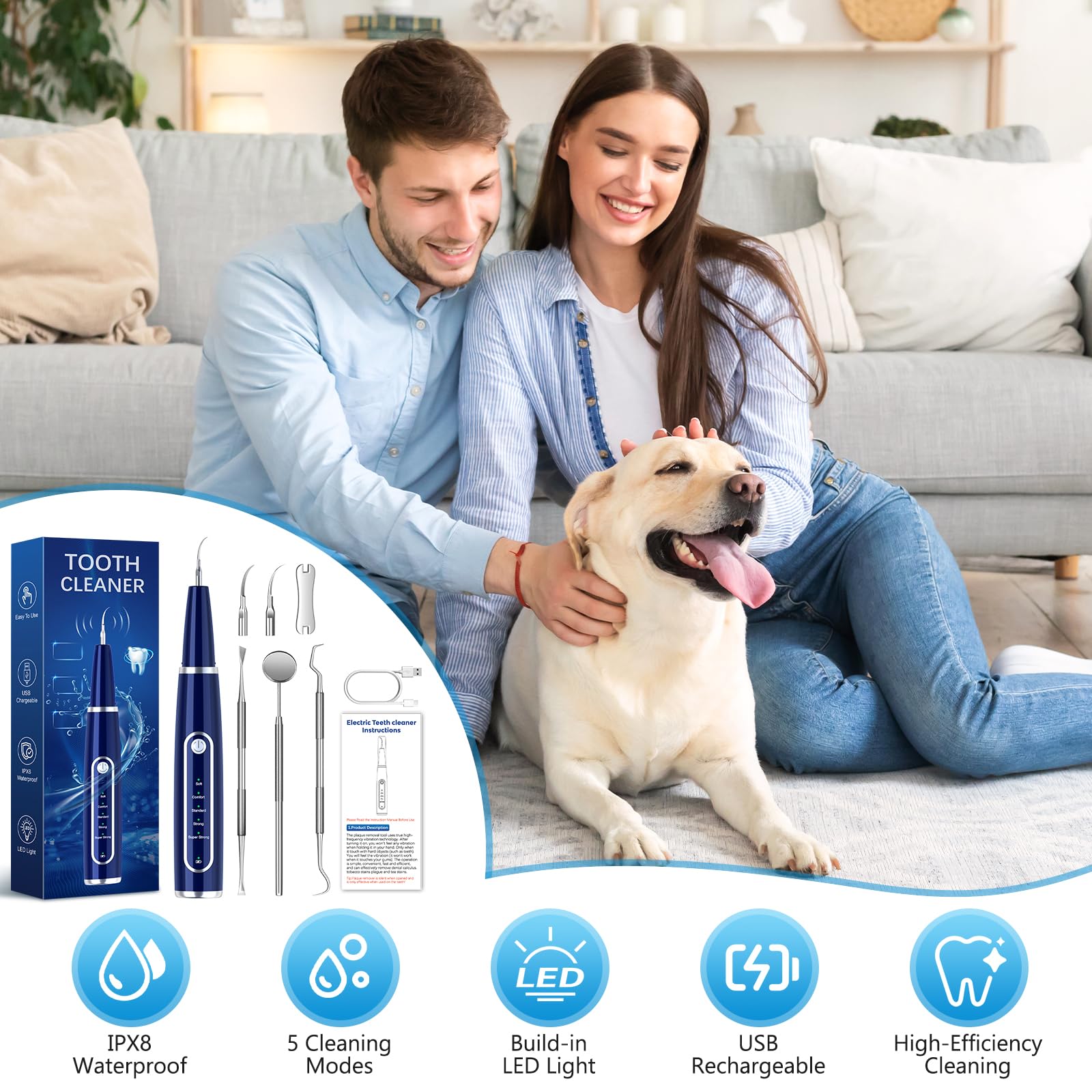 lovewo Plaque Remover for Teeth, Teeth Cleaning Tools with LED Light Tartar Remover 5 Modes Teeth Cleaning Kit, Blue