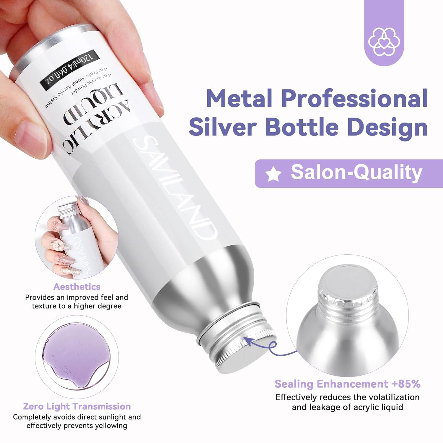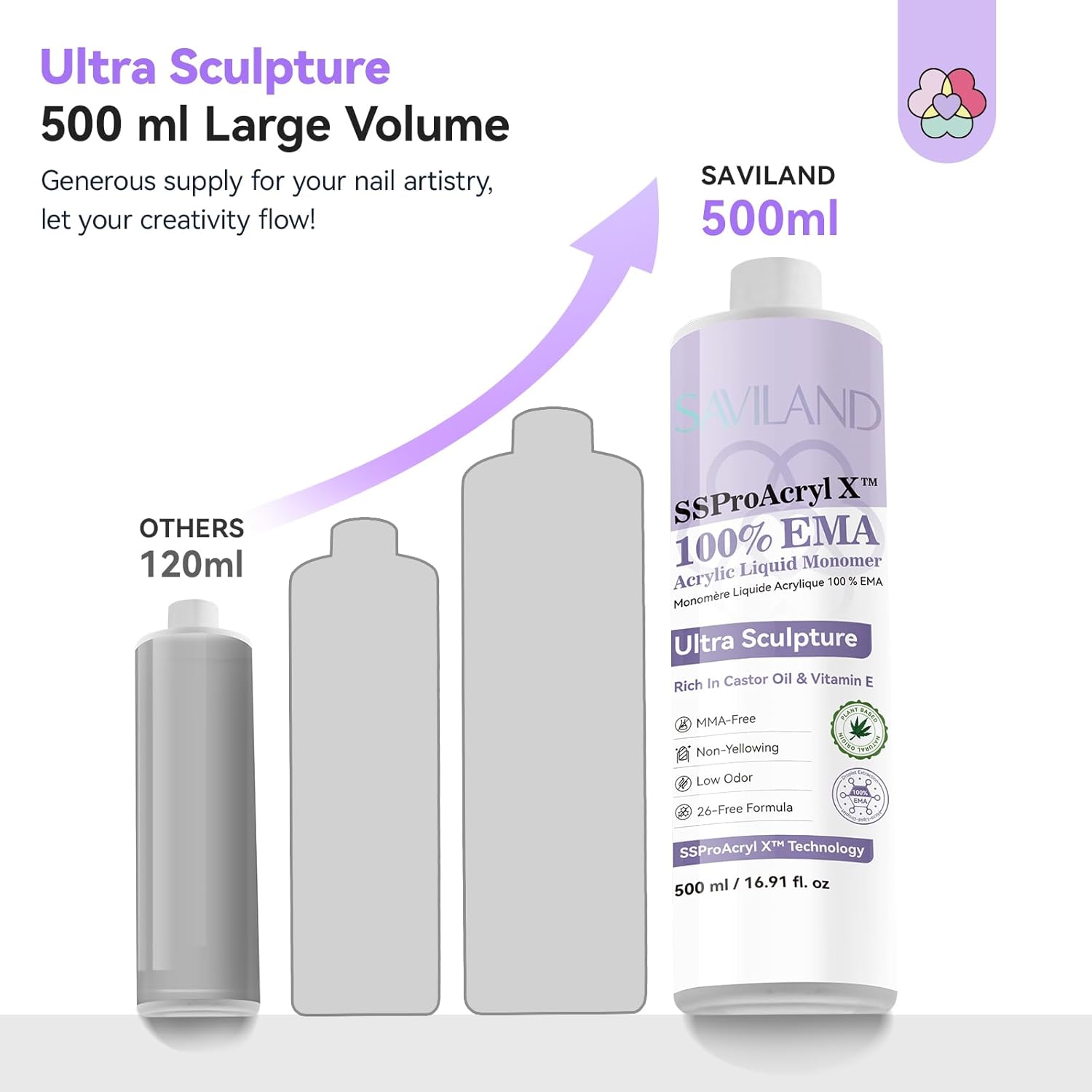 - Pure EMA Monomer Acrylic Nail Liquid: SAVILAND Acrylic Liquid is formulated with pure EMA, free from harmful MMA. It blends seamlessly with acrylic powders for superior results and is safe for use. It's the perfect choice for individuals sensitive to traditional Acrylic Monomers