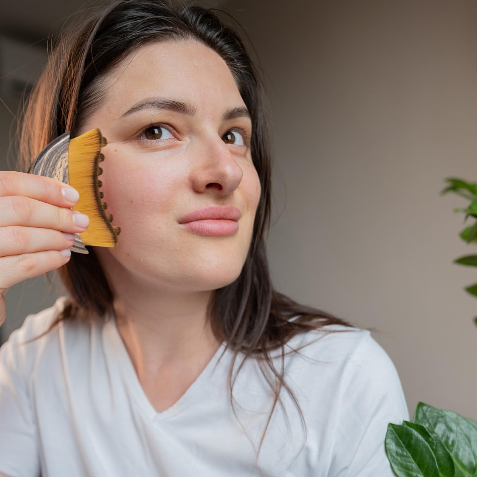 - Anatomically Designed for Faces:Designed to match the natural contours of your face, the curved edges gently hug your cheeks, jawline, and neck for a deeper, more accurate massage experience. Perfect for lifting and sculpting, this tool outperforms traditional flat brushes.