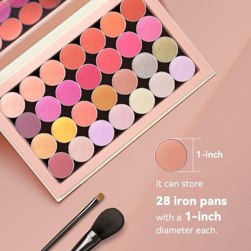 - Enough Space and Depth: The exterior dimension of the palette is 8.06" L x 5.11" W x 0.71" D, and the interior dimension is 7.1''L x 4.13'' W x 0.28'' D, allowing you to store up to 28 eyeshadow iron pans with 1-inch diameter. It can easily carry all kinds of pans you have.