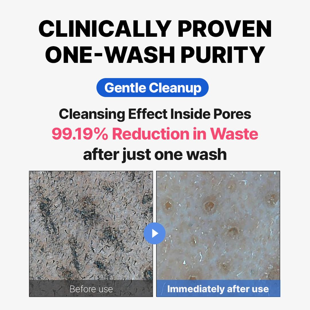 - Instant Deep Pore Cleansing: Experience immediate results with our clinically proven formula that reduces pore impurities and sebum by up to 99.19% after just one use. Our advanced cleansing foam ensures every nook and cranny of your pores is meticulously cleaned, giving you a fresh, breathable complexion.