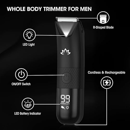 Manscape Trimmer for Men - Electric Body Hair Trimmer with Light, IPX7 Waterproof Electric Razor for Balls/Pubic/Groin/Legs/Chest Hair Removal, Lightweight with LED Display, Gifts for Him Dad