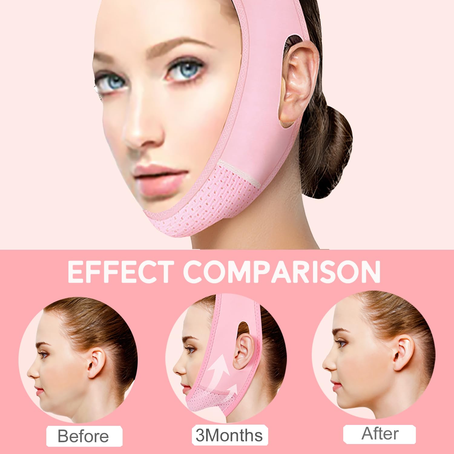 MASIKA Chin Strap for Sleeping,Adjustable Chin Strap,Jaw Strap,Jawline Shaper,V-Line Mask Chin Up Mask V Shaped Face Mask, Jaw Exerciser,Reusable chin strap,Pink。