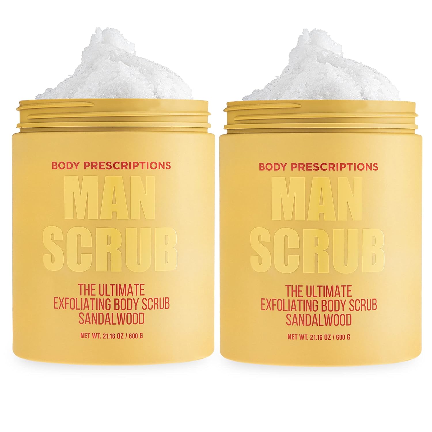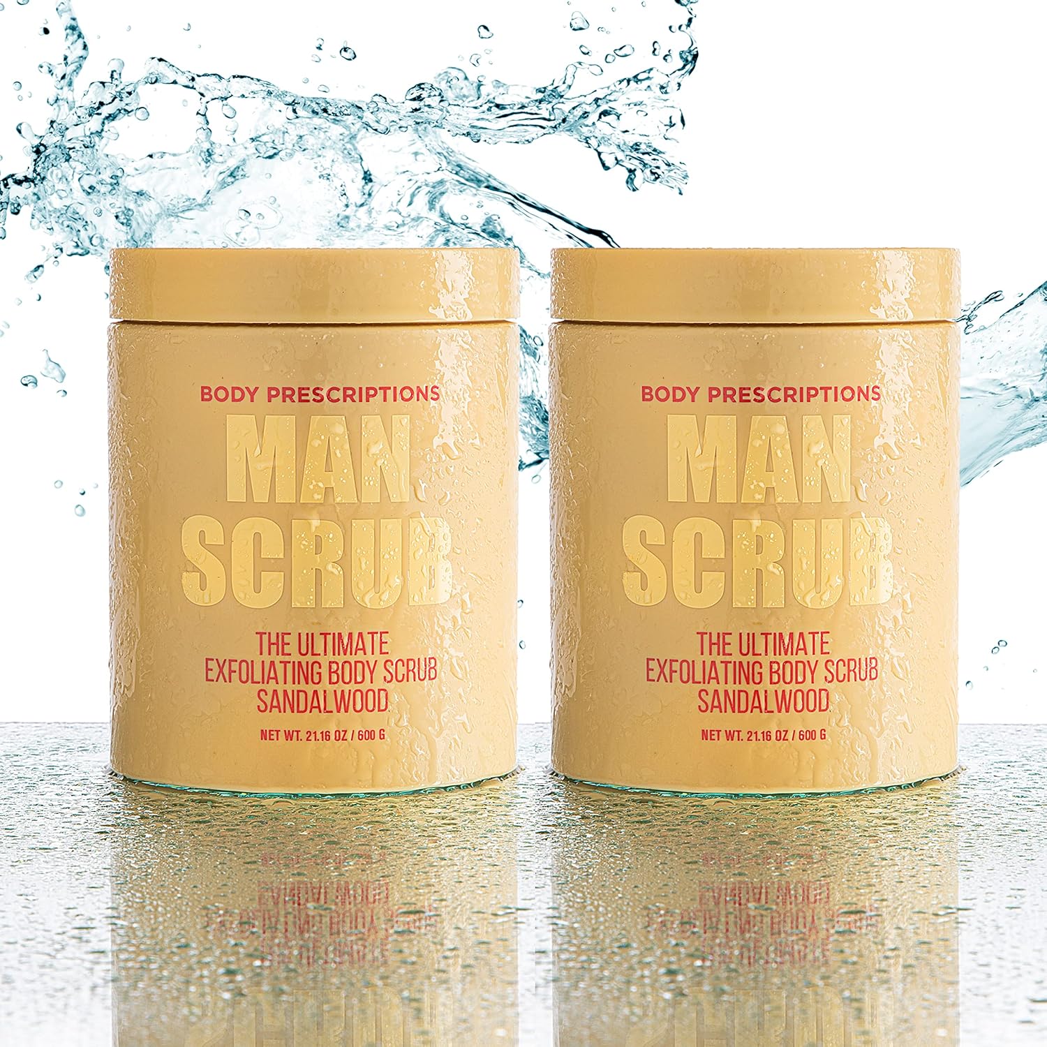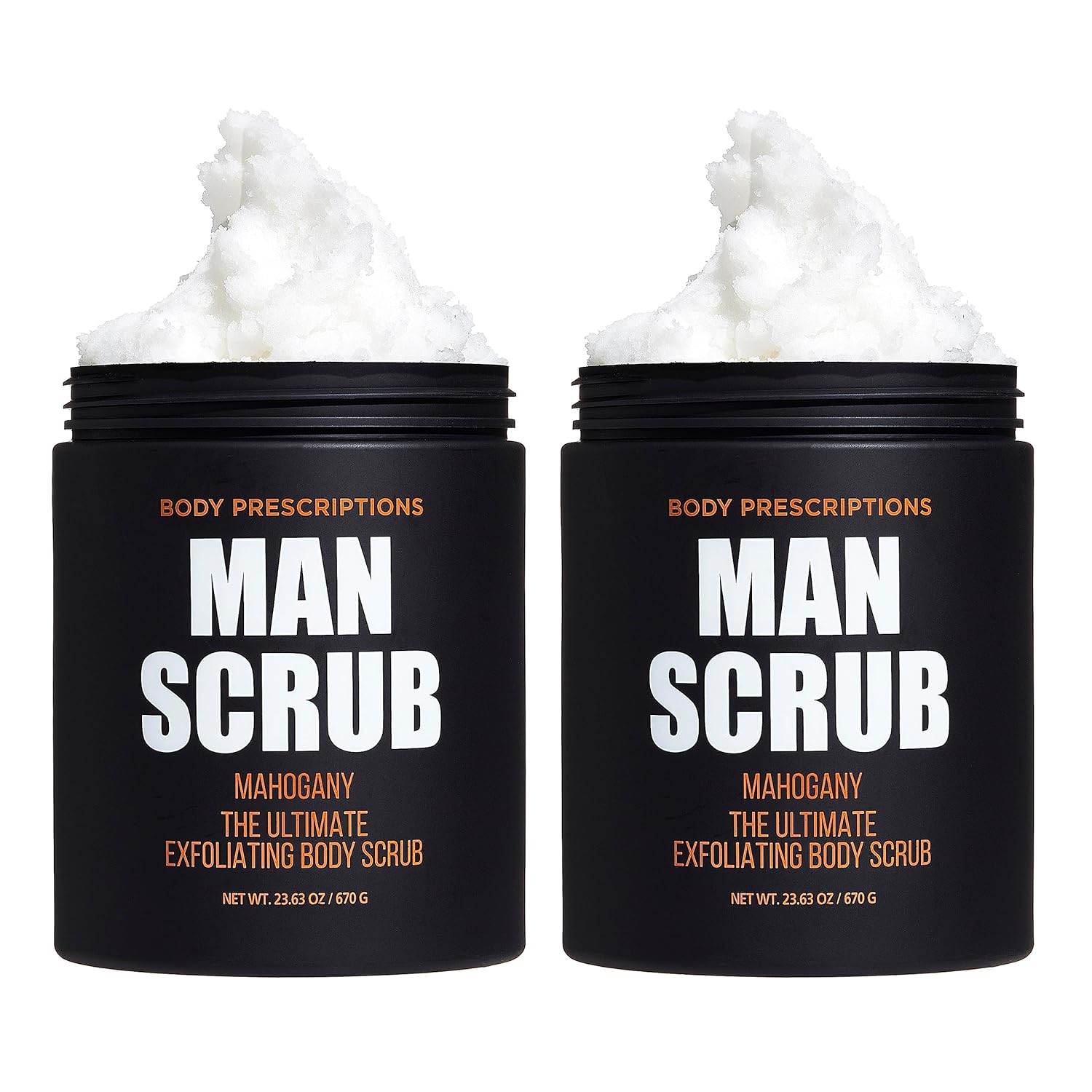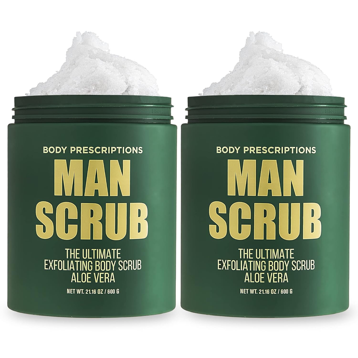 - RELAX + REFRESH: Delight your senses and relax at home with this 21.06 oz ultimate exfoliating body scrub from body prescriptions. The “Man Scrub” comes in a large jar with an easy-to-use twist off top.
