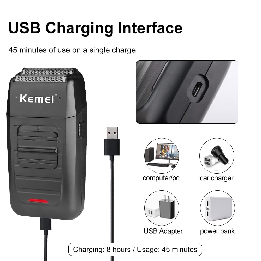 Men's Cordless Electric Razor - Kemei Precision Beard Trimmer with Twin Blades
