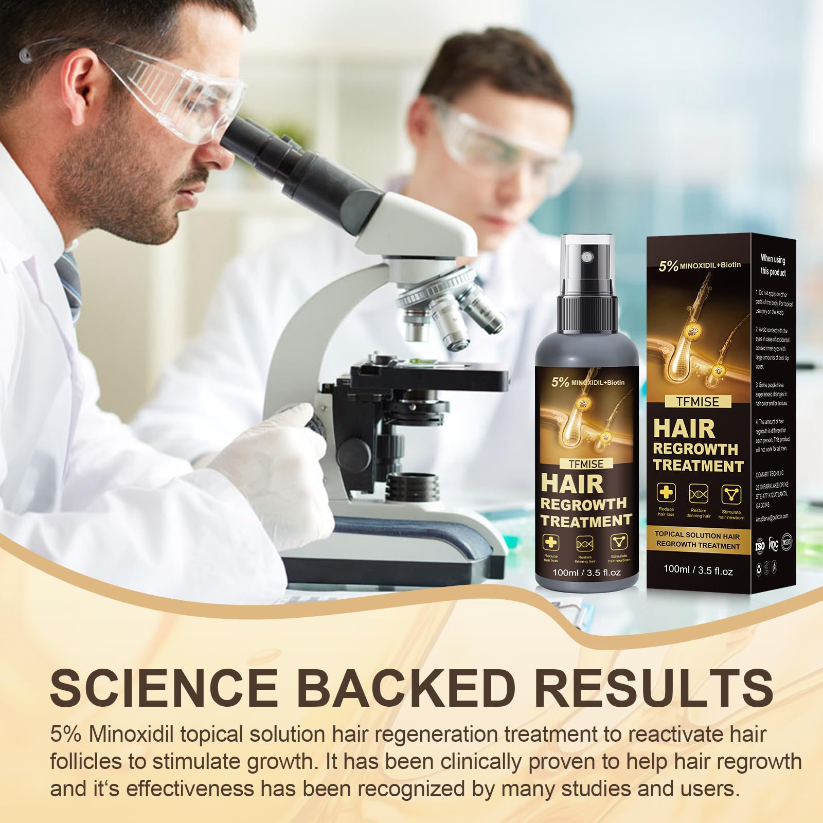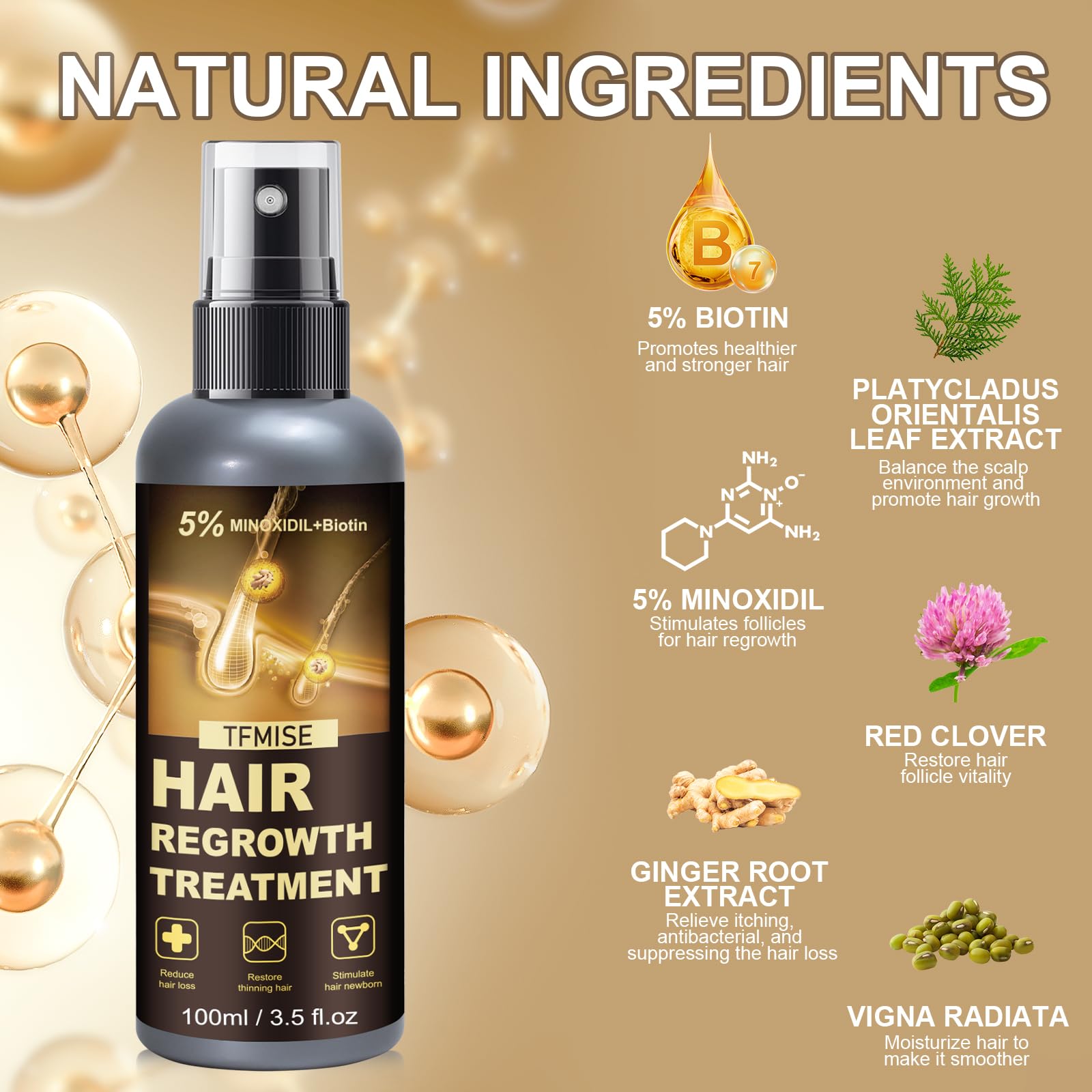 - MINOXIDIL HAIR GROWTH SPRAY: 5% Minoxidil is the dermatologist highly recommended ingredient for hair loss and is clinically proven effective for hair regrowth and effectiveness of minoxidil spray has been recognized by many studies and users. It's effective for hair growth for men and women. You can only achieve excellent results through continuous use.