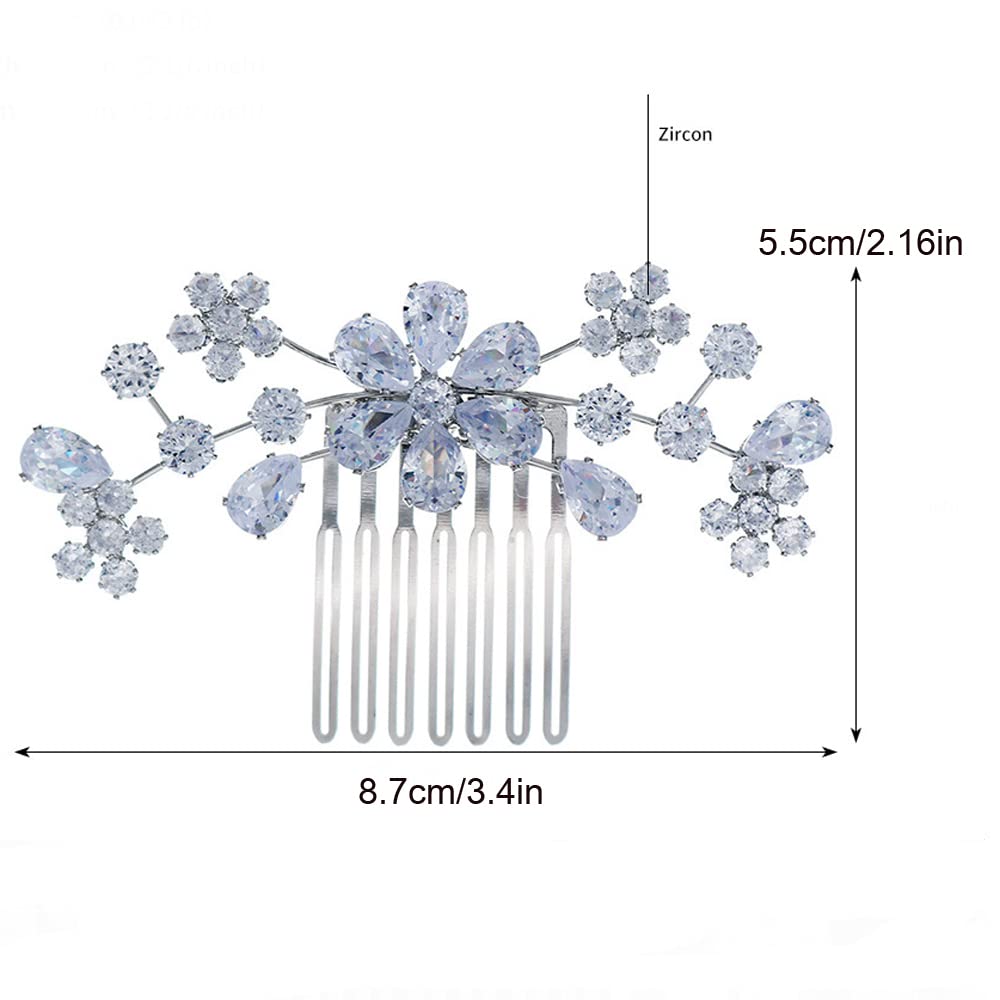 Missgrace Silver Bride Wedding Prom Sparkling Simple Zircon Side Hair Comb Crystal Rhinestones Flower Hair Comb Clips Bridal Hair Accessories Hair Piece for Women and Girls