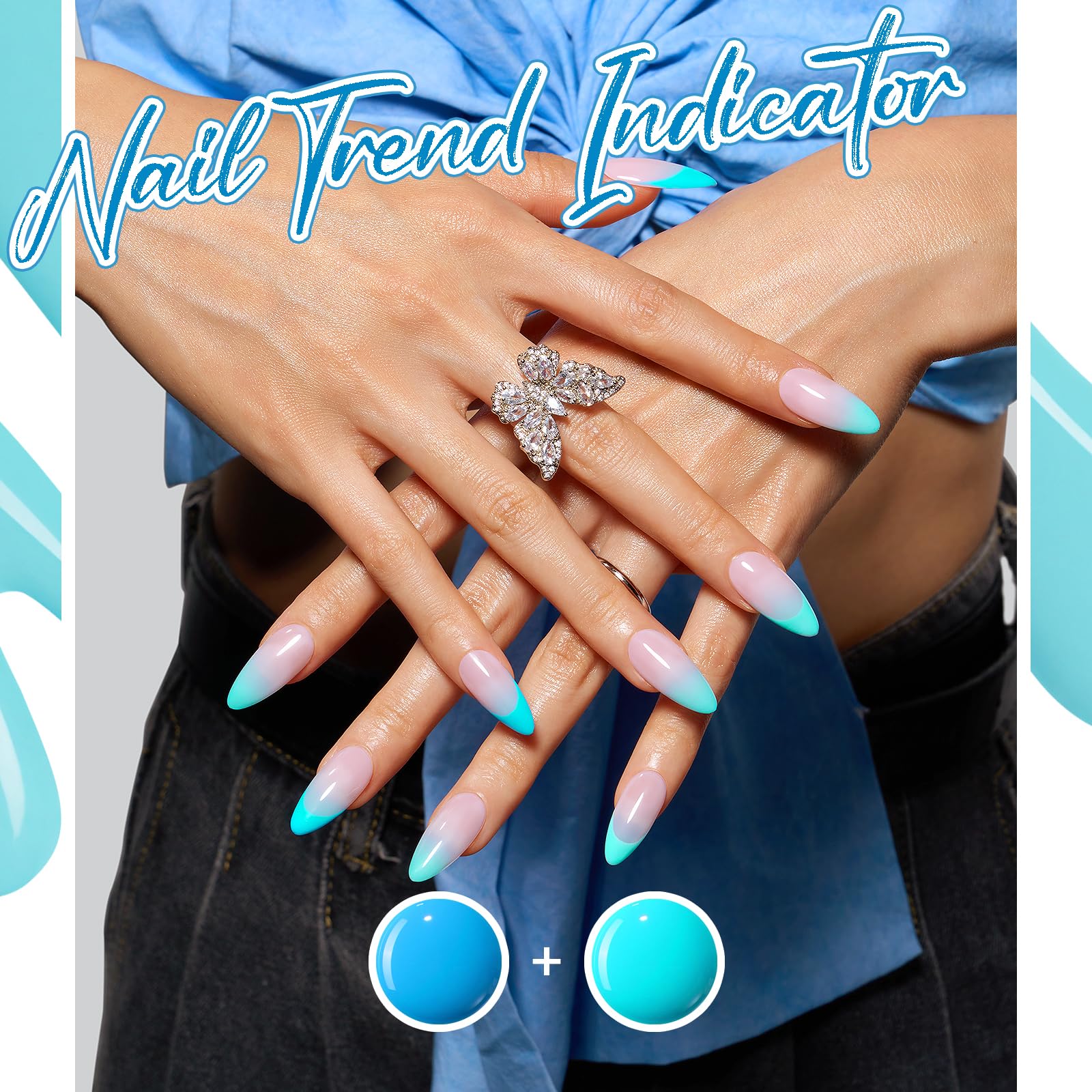 modelones Gel Nail Polish Kit White French Jelly Pink Pastel Blue Ocean Gel Polish Set with 10 Pcs Nails Sponge for Ombre & Stickers, 4 Colors Gel Mini Salon Home DIY Trend Manicure Gift for Women