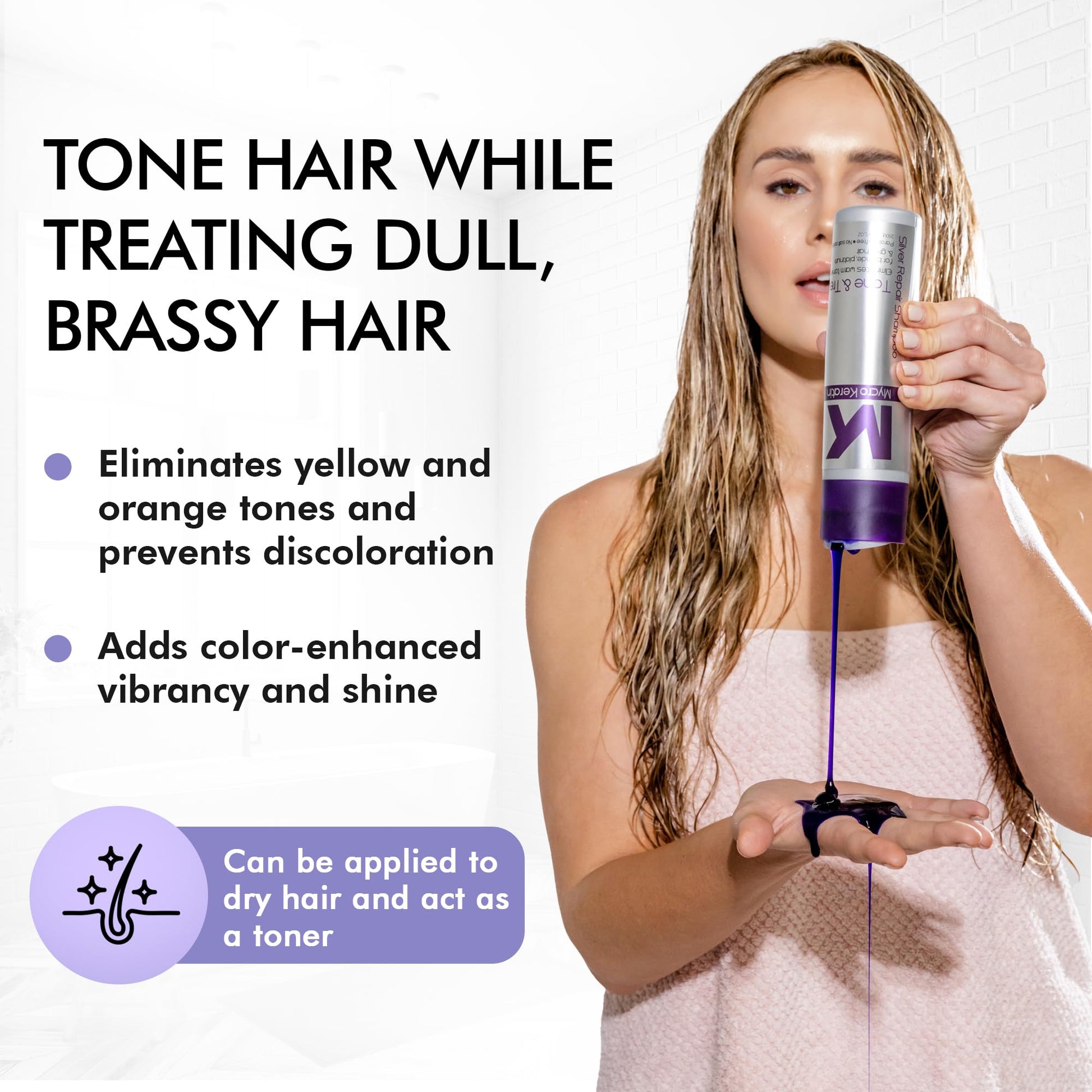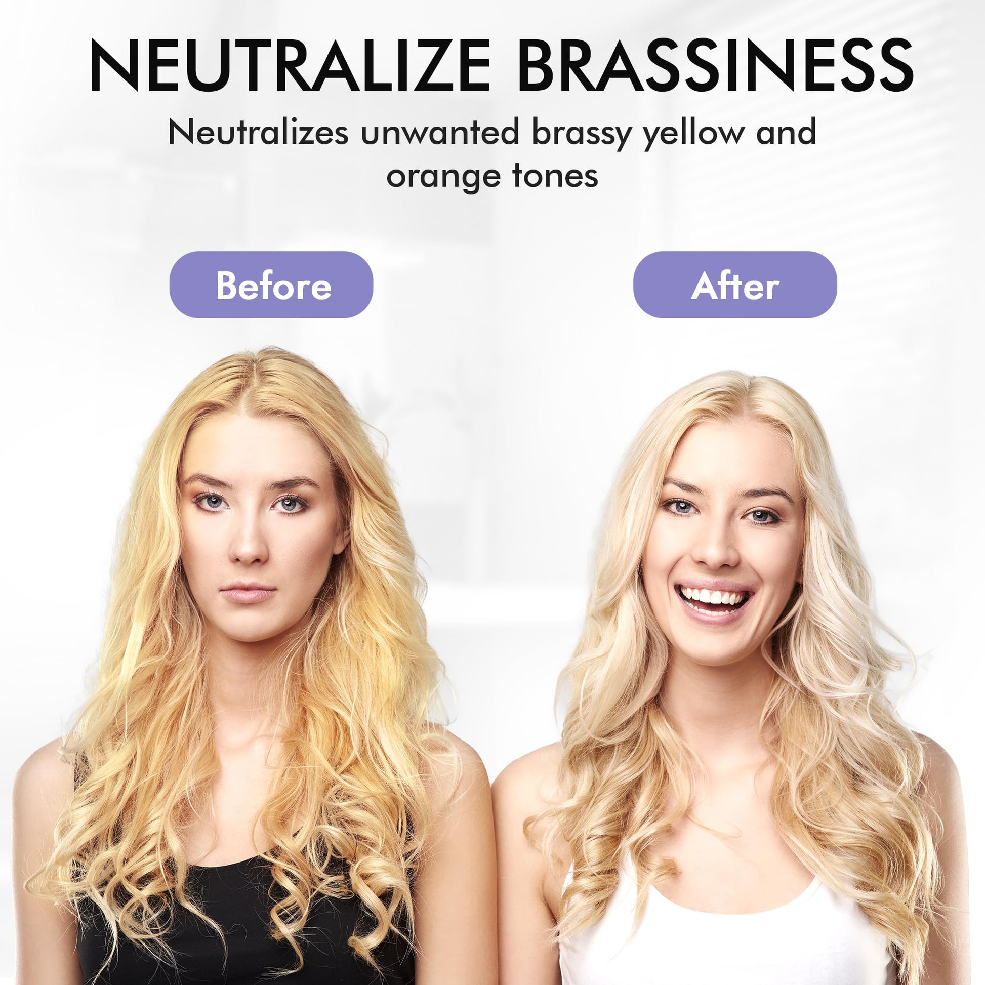 - Extensive Blond Hair Care: Whether it's silver, gray, blonde, platinum, or highlighted hair, our purple toning shampoo elevates its brilliance. Extend the intervals between salon visits with this quality at-home haircare color depositing purple shampoo toner, which revitalizes and nourishes bleached blonde hair without causing dryness.