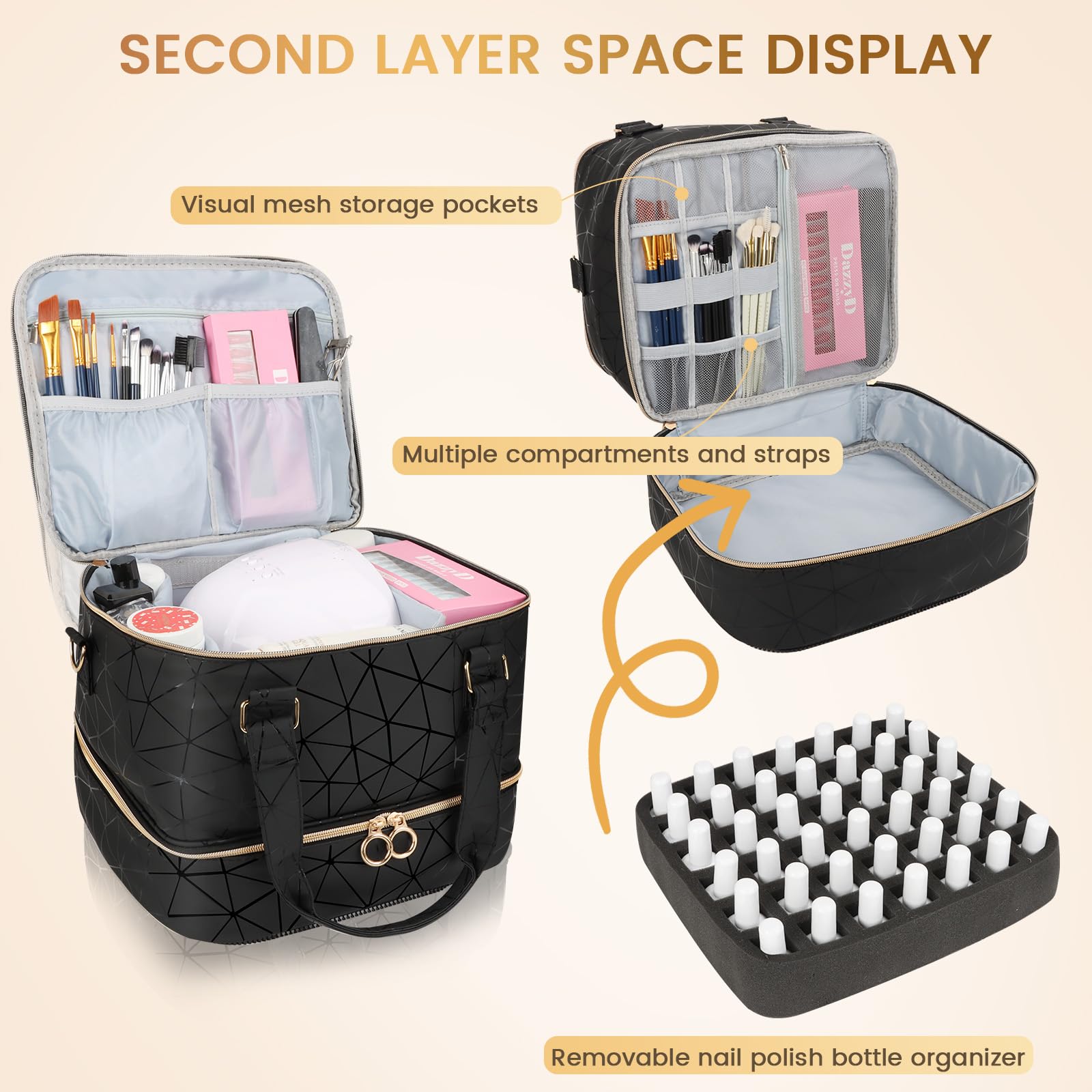 - Three Layer Nail Polish Organizers and Storage Bag: The nail polish organizer bag has a removable design. The upper space has two adjustable dividers for storing larger models of nail lamps. Interior pockets are clearly visible adding convenience and giving you quick access to nail art tools as needed. The third layer can be used alone, and you can feel free to use it as a small nail kit storage carrying case for your convenience.