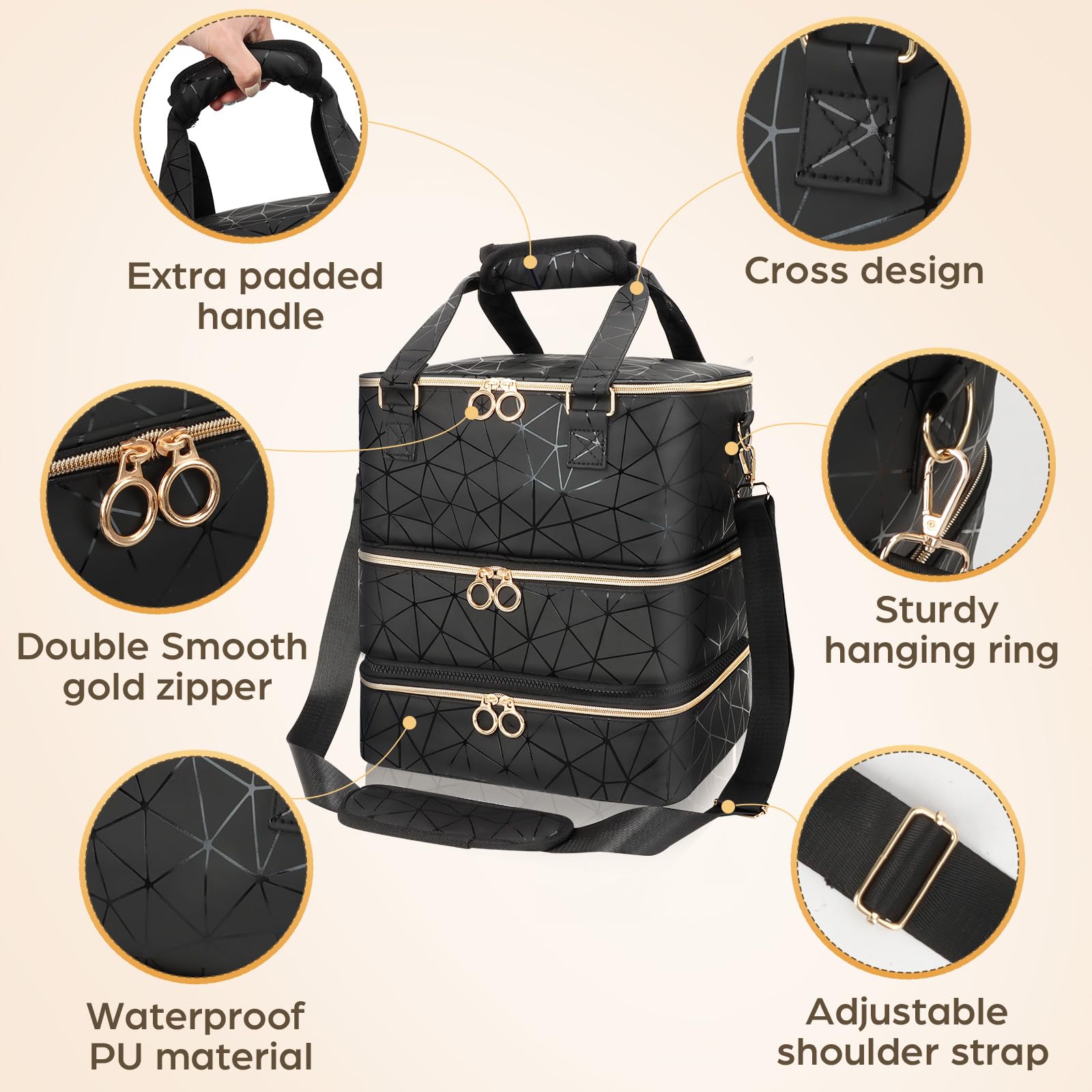 - Easy To Carry: With this nail organizer, you can bring necessary nail art tools with you when go out for trip or work. The partition storage function, which can be used as a nail polish case organizer, makeup bag, travel bag, etc. The nail polish bag has a 31.3-inch adjustable shoulder strap, suitable for women of different heights.