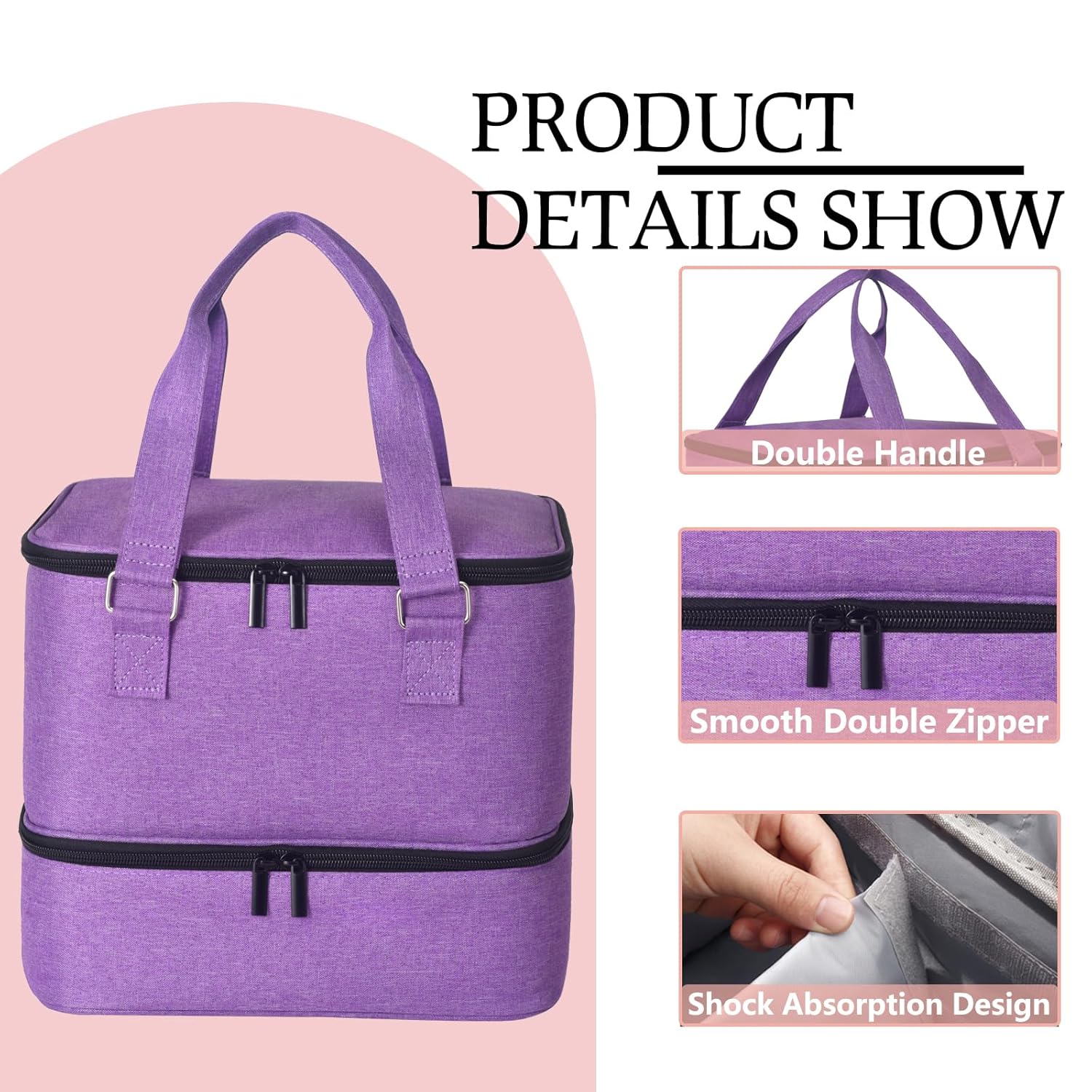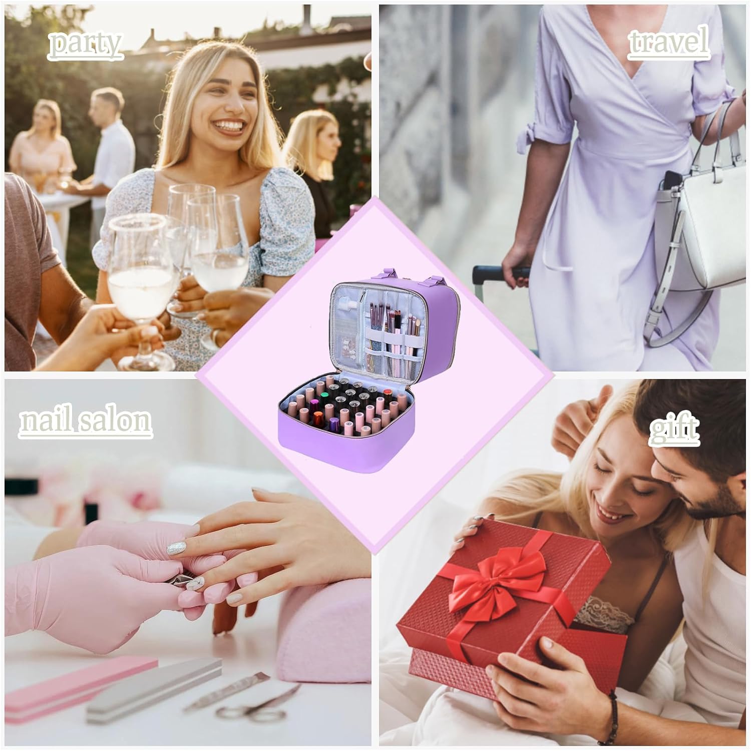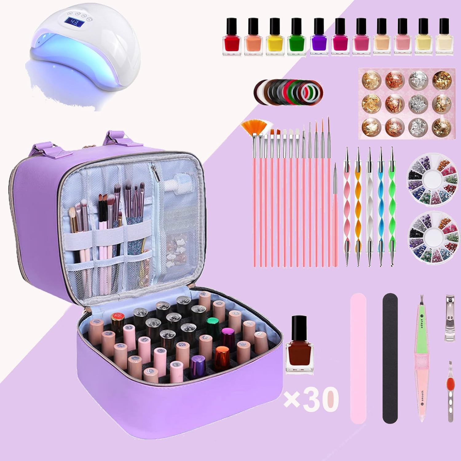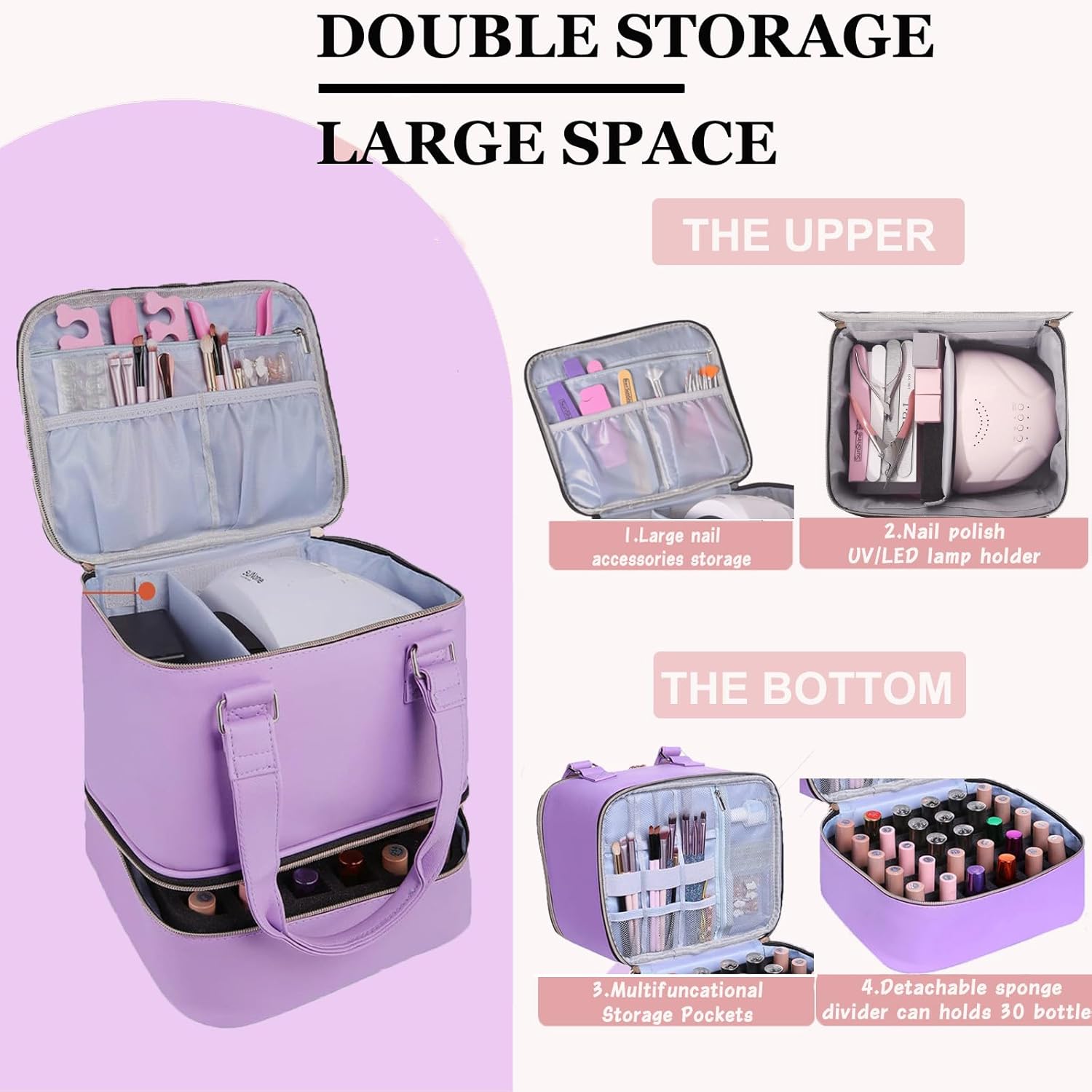 Nail Polish Organizer Bag with Travel Case for 30+ Bottles & Nail Lamp - Purple
