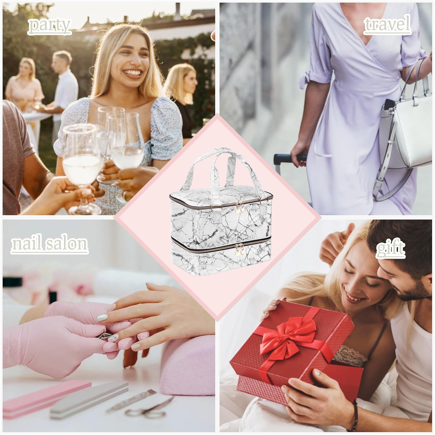 - 4.Easy to Carry: The two handles make to convenient to carry evenly when you're traveling. Whether you are a manicure lover or a home nails polish storage, business trip. Give to your significant other on the holidays
