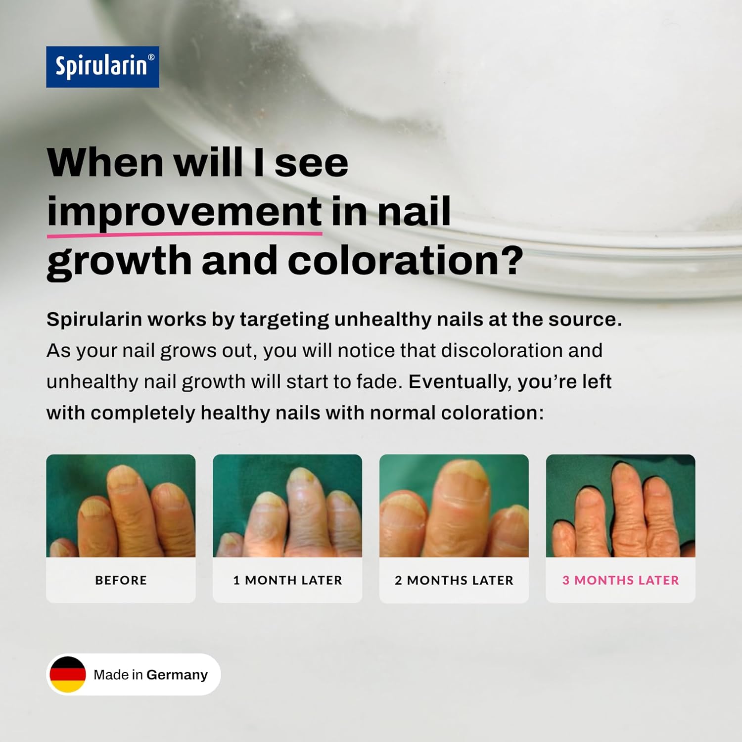 - Natural Remedy for Nail Discoloration: Unlike other products that contain unhealthy, unnatural ingredients, Spirularin only uses the highest quality natural ingredients found in the pristine waters of the North Sea. All products are manufactured in Germany.