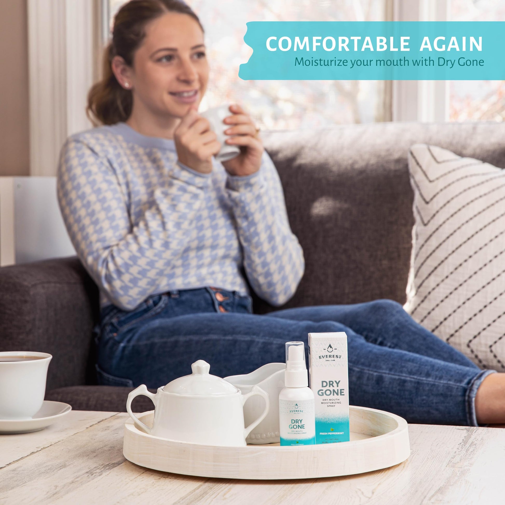 - Help Is Here – Tired of your mouth feeling like a desert? Find relief with Everest! Your dentist-formulated Dry Gone spray helps moisturize your oral tissues with all-natural oils and extracts.