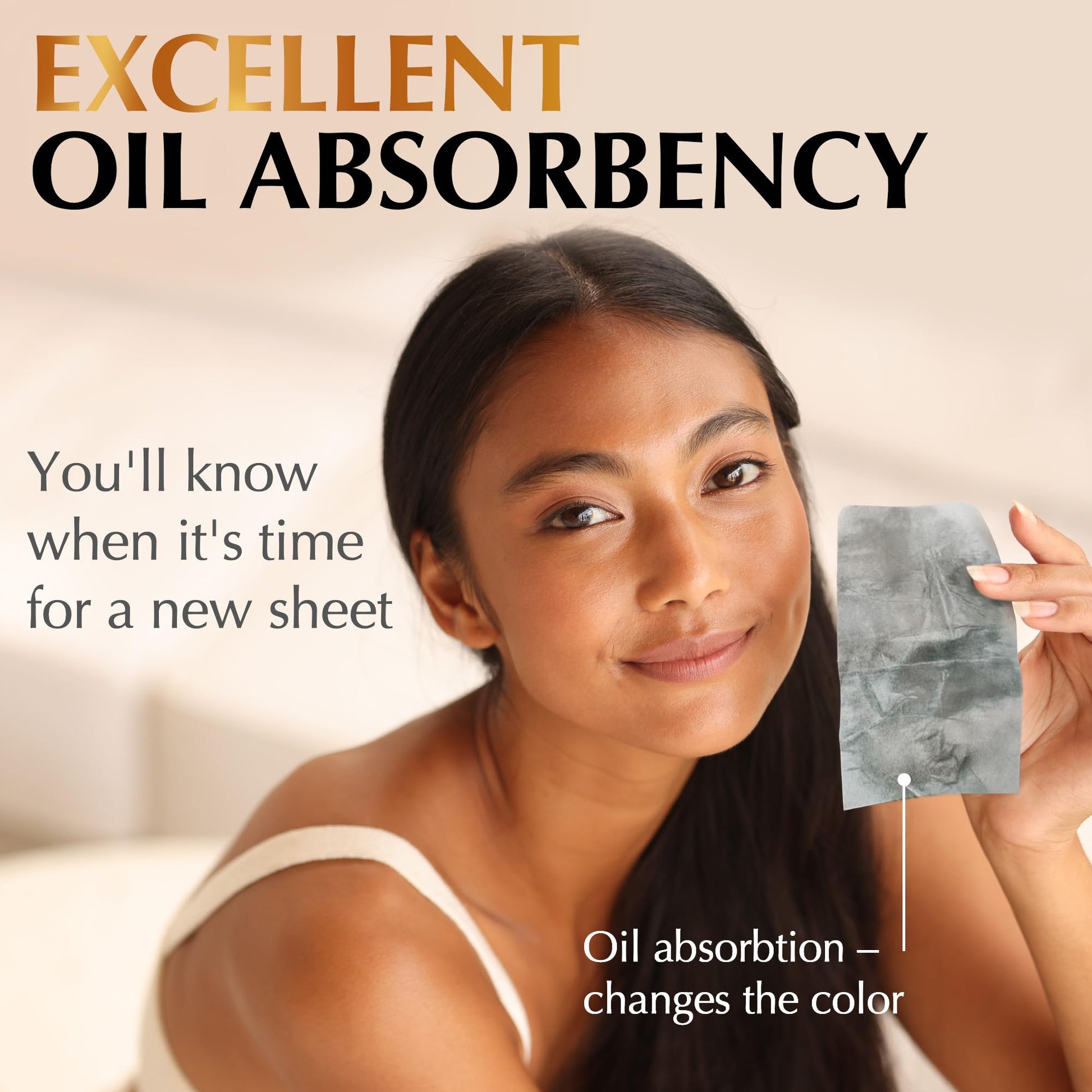 Natural Oil Blotting Sheets for Face with Bamboo Charcoal - 25% Larger - 3pk/300 Makeup Friendly Oil Absorbing Sheets for Face - Easy Dispensing Blotting Papers