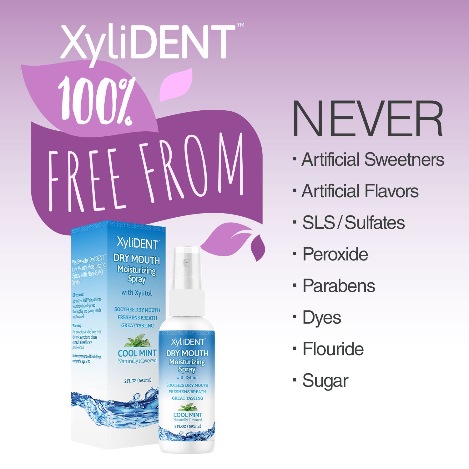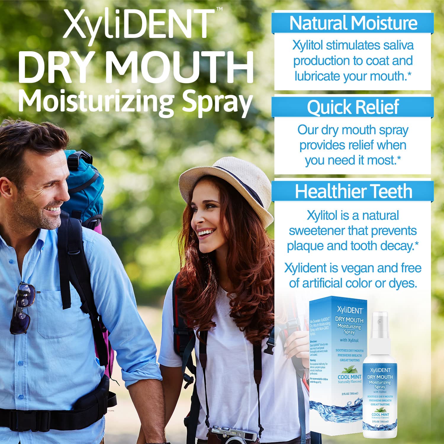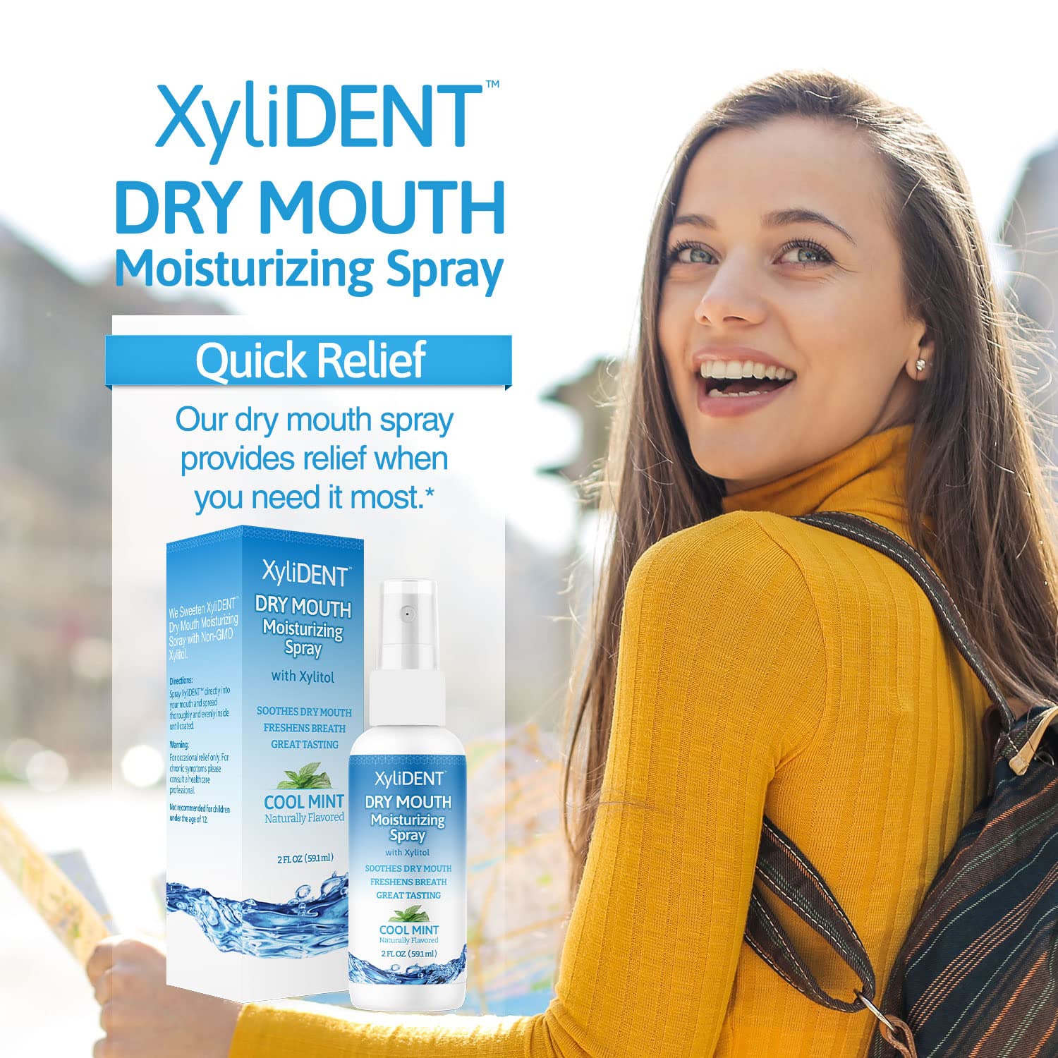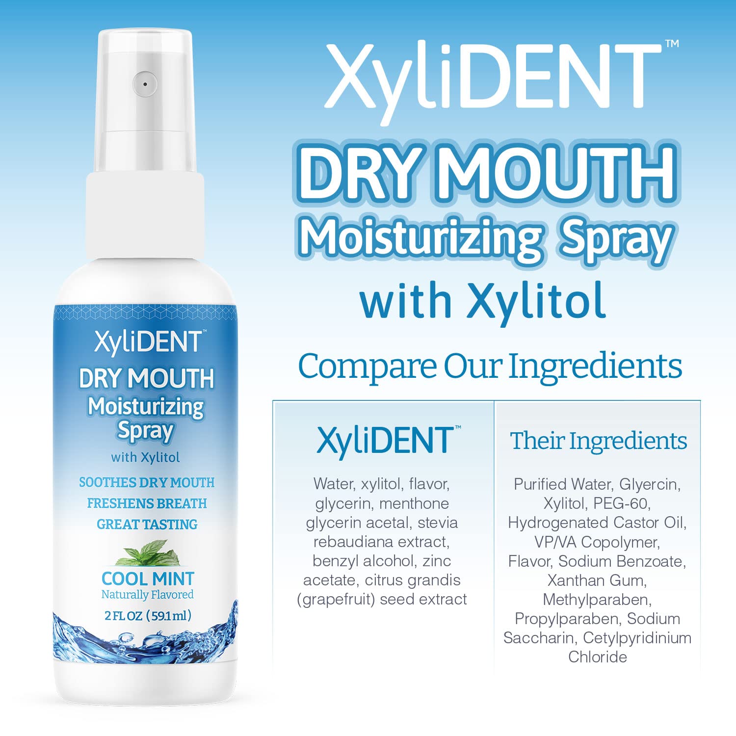 - XYLITOL SOOTHES DRY MOUTH – XyliDENT’s mouth spray for fresh breath helps stimulate saliva production to naturally moisten your mouth and slow the rate and amount of acid production in the mouth. This reduction of acid also helps protect from increased risk of cavities, gingivitis & bad breath.