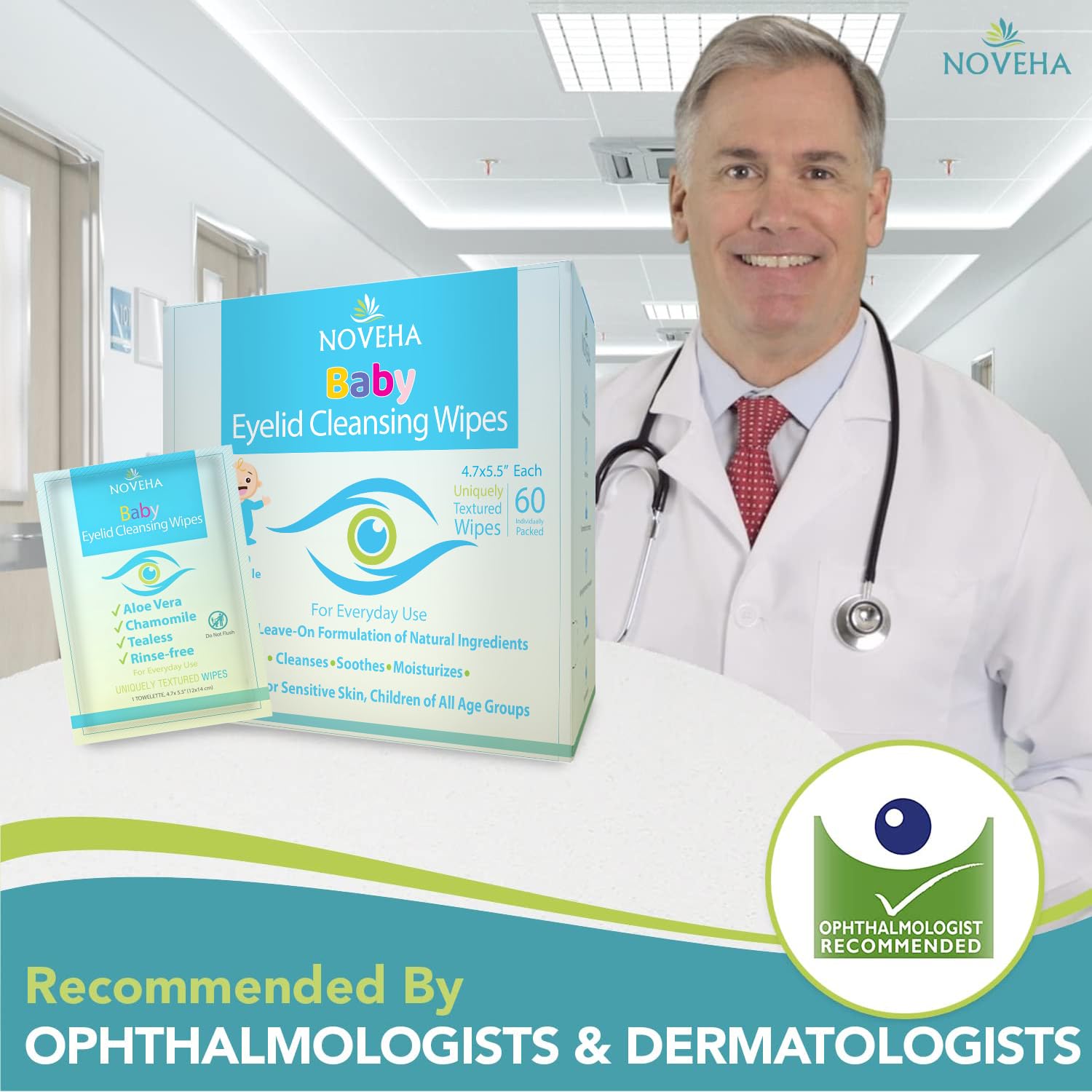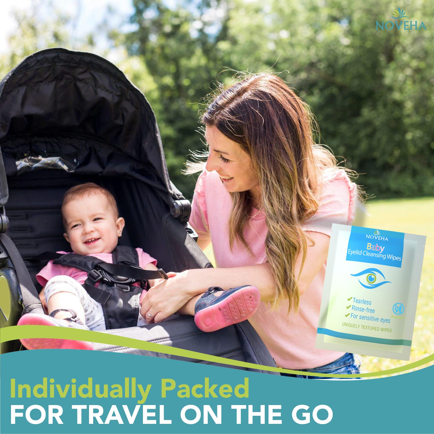 NOVEHA Baby Eyelid & Lash Wipes | Safe & Natural Pack of 60 Pre-moistened Wipes