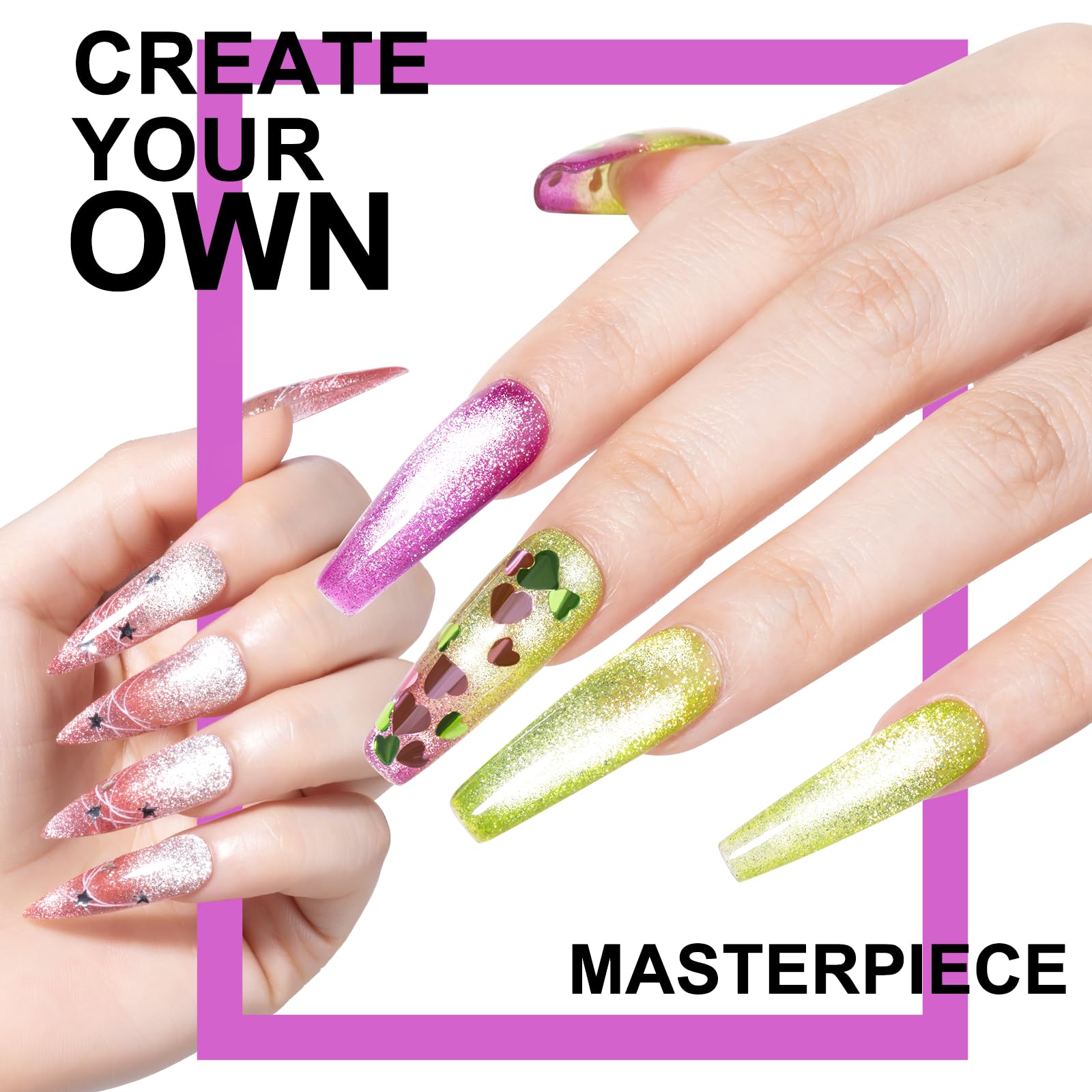 - Magnetic molding and easy control:The suspension magnet directs metallic particles in 5 seconds, and the LED light dries in 60 seconds. The silky texture makes it easy to shape 3D light and shadow, even a novice can create a salon-level star effect