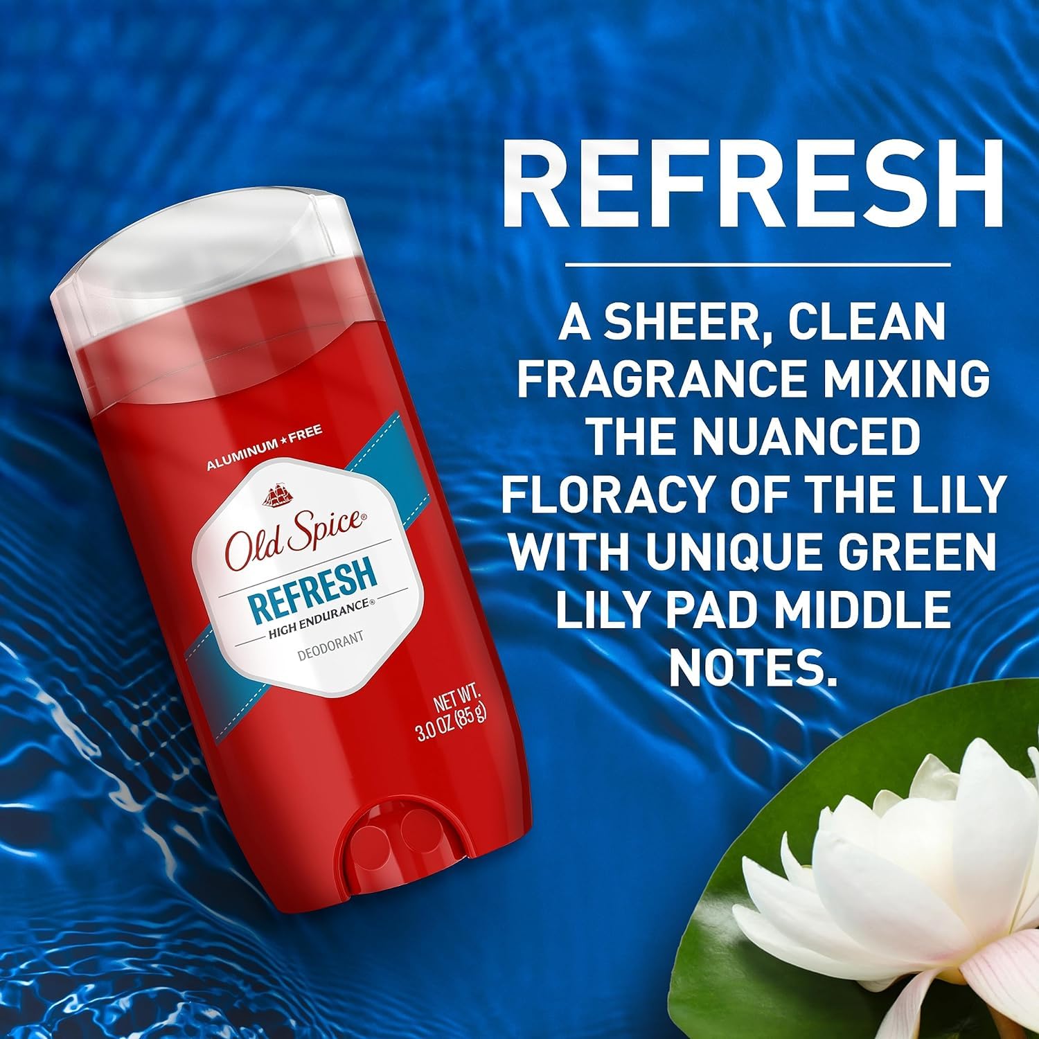 Old Spice Aluminum Free Deodorant For Men, High Endurance, 24/7 Sweat Defense & Odor Protection, 24/7 Freshness & Lasting Scent, Refresh Scent, 3.0 oz (Pack of 3)