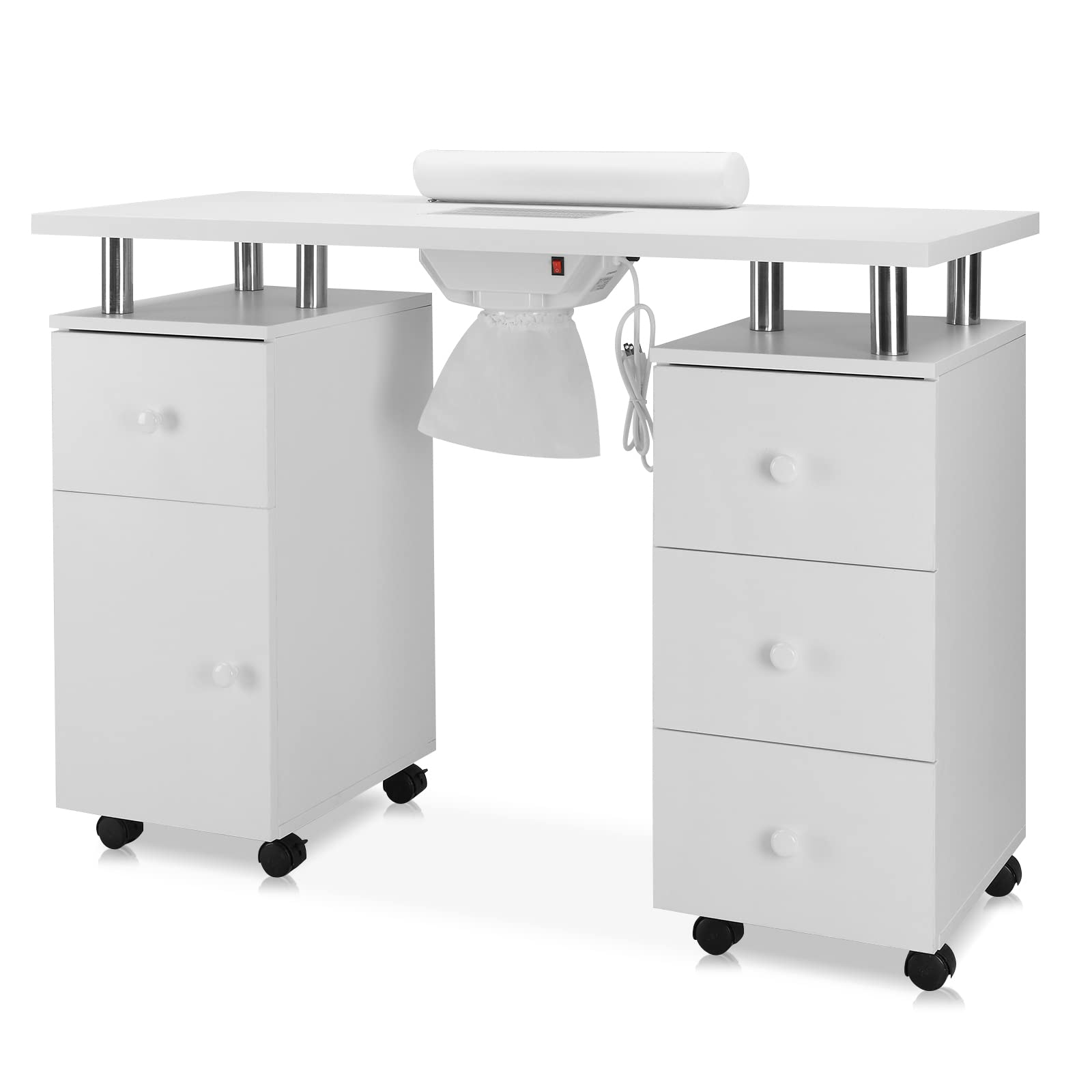 OmySalon Manicure Table Nail Desk for Nail Tech, Nail Table Beauty Salon Station w/Electric Dust Collector Acetone Resistant w/Lockable Wheel,Arm Rest
