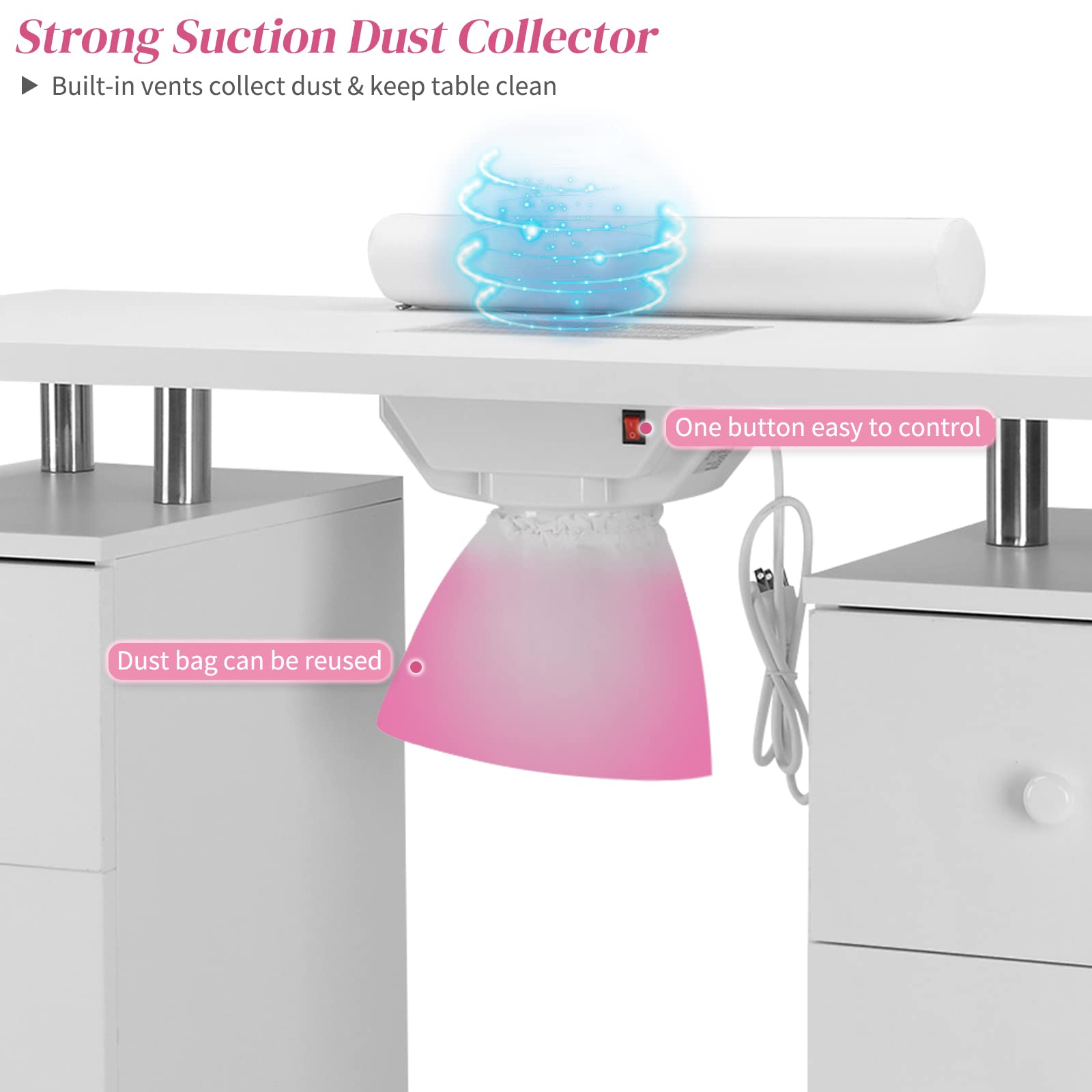 - 【STRONG ELECTRIC DUST COLLECTOR】-Built-in powerful and efficient electric dust collector. One-button start and detachable dust bag can easily remove and collect nail shavings and dust generated during the manicure. To keep your desktop clean and provide a hygienic environment for you and your customers.