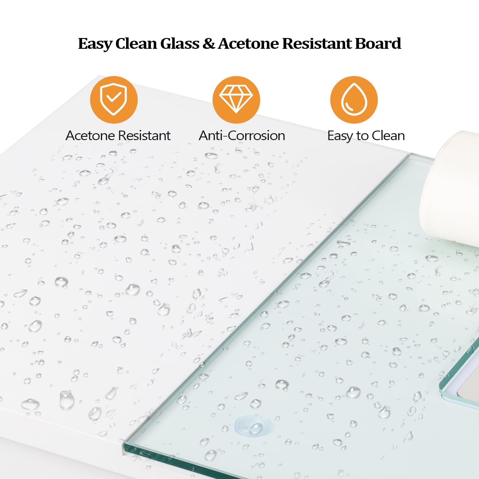OmySalon Manicure Table Nail Desk for Nail Tech w/Glass Top & Wrist Rest, Beauty Salon Nail Supplies Decor Workstation Acetone Resistant w/2 Side Cabinet+3 Drawers, White