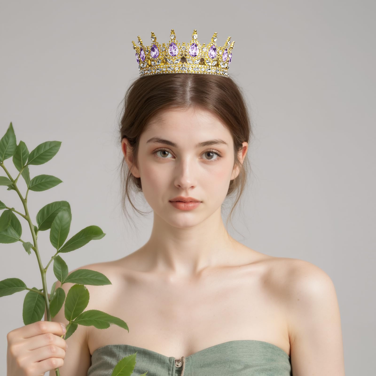 Onedor Gold Crown for Women Crystal Rhinestone Tiara Queen Headpiece for Wedding Prom Pageant Birthday Princess Theme Costume Party Hair Accessories and Cake Topper Decoration