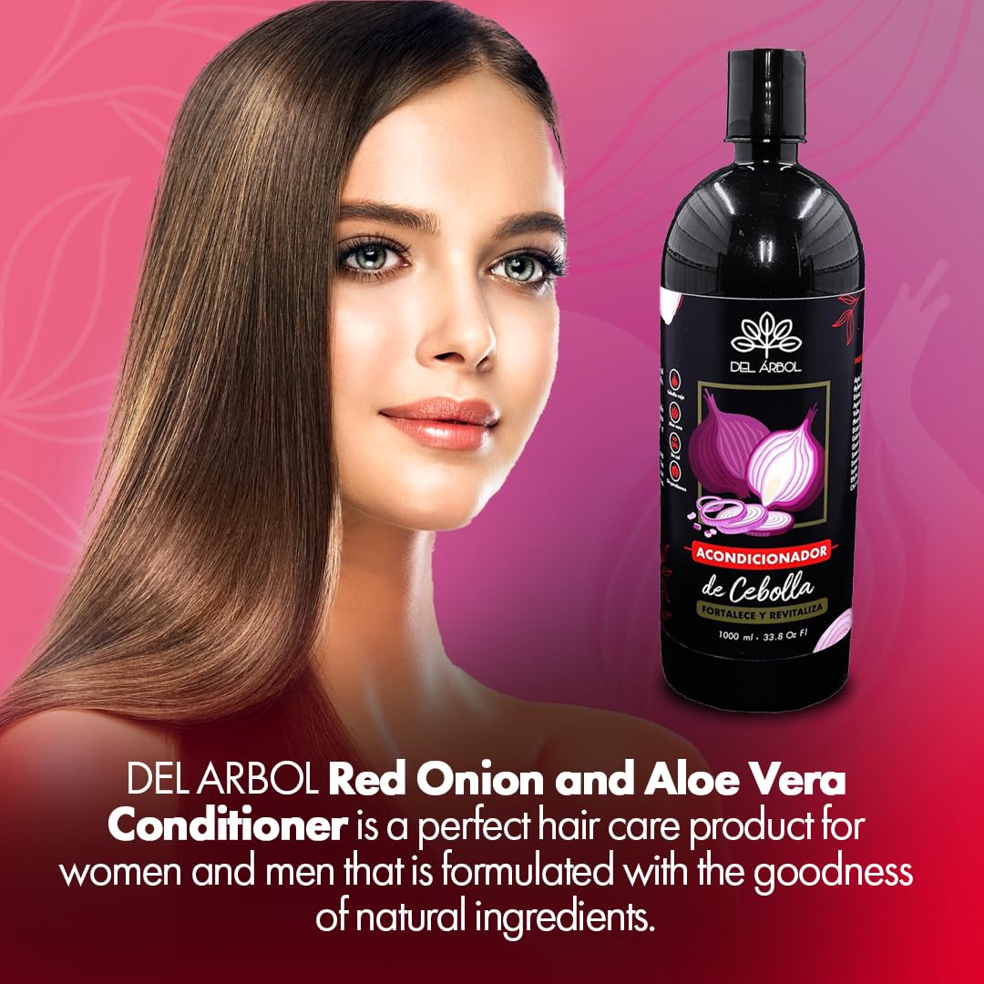 Onion Hair Conditioner DEL ARBOL. Red Onion and Aloe Vera Hair Strength Conditioner - Boosts Shine, Revitalizes Thinning Hair- Paraben Free - Family Size 33.8 fl. oz